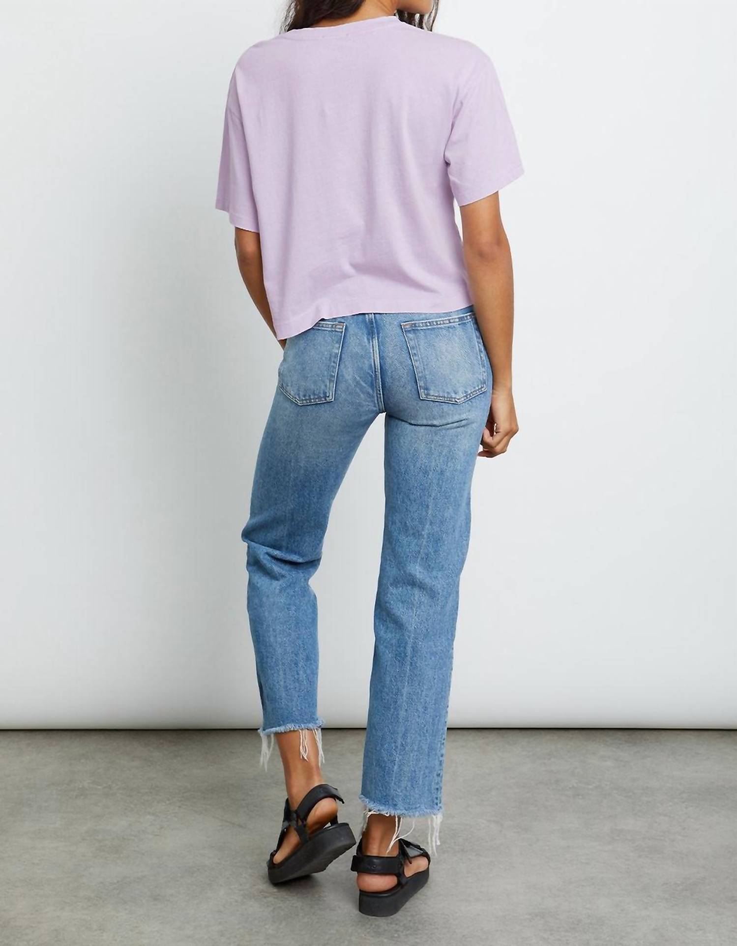 Esta camiseta clássica de manga curta será sua peça-chave nesta temporada e nas próximas. DETALHES | Camiseta de algodão camurça, manga curta, gola redonda lavanda, com caimento justo, decote redondo relaxado, mangas soltas e comprimento cropped. Super macia e descontraída, esta camiseta é perfeita para o dia a dia. Importada. Lavar à máquina com água fria separadamente. Secar em temperatura baixa. Passar a ferro em temperatura fria, se necessário. Não usar alvejante nem lavar a seco. Recomendamos pedir o tamanho real. Comprimento do corpo: 21". A modelo está usando tamanho P. Medidas da modelo: Altura 1,78 m, Busto 86 cm, Cintura 63 cm, Quadril 89 cm.