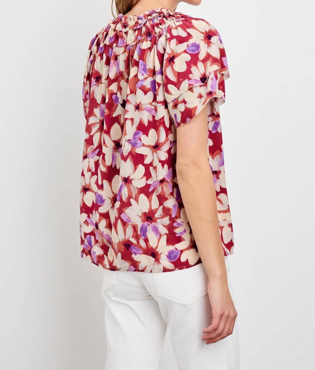 Uma blusa atemporal que nunca sai de moda. Eleve seu guarda-roupa de verão com o Top Feminino Kamila da Rails, disponível em um deslumbrante tom amaranto. Esta blusa floral apresenta um decote em V feminino e mangas bufantes, realçadas por uma gola elástica com babados e um botão de concha natural no solado. Confeccionada em uma mistura de 61% rayon e 39% viscose, possui zíper lateral para fechamento. Esta peça é importada e mede 62 cm de comprimento frontal. Para melhor conservação, lembre-se de que a lavagem deve ser feita somente a seco.