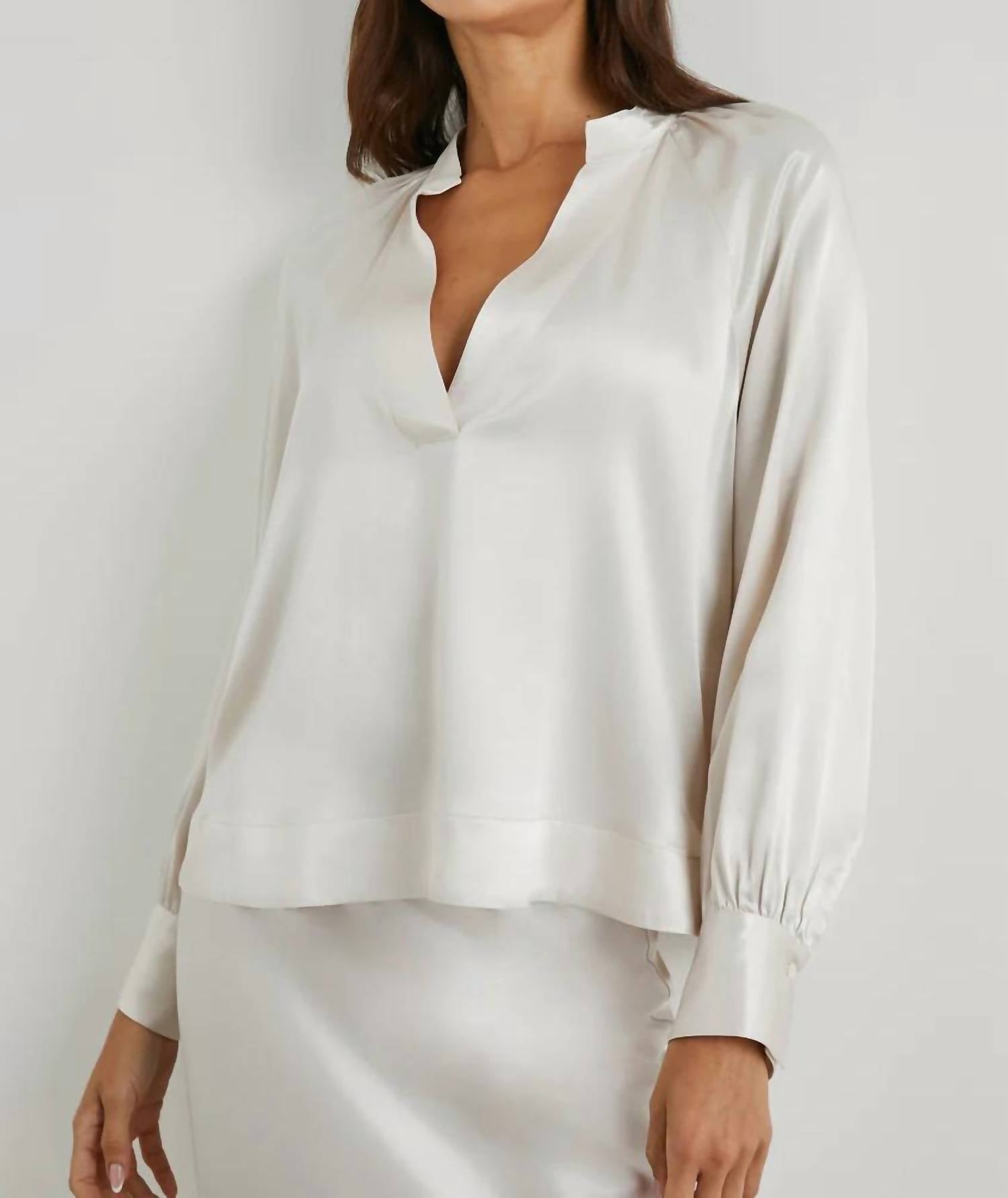 Eleve seu guarda-roupa com o Top Wynna da Rails, uma blusa clássica em elegante tom marfim que combina sofisticação e versatilidade com perfeição. Este top de manga comprida, confeccionado em crepe acetinado nas costas, apresenta um elegante decote em V acompanhado de franzidos elegantes nas mangas e nas costas. Confeccionado em uma luxuosa mistura de 55% rayon e 45% viscose, possui um prático fecho de pressão. Importada pela qualidade, esta peça é um item indispensável em qualquer arsenal de estilo.