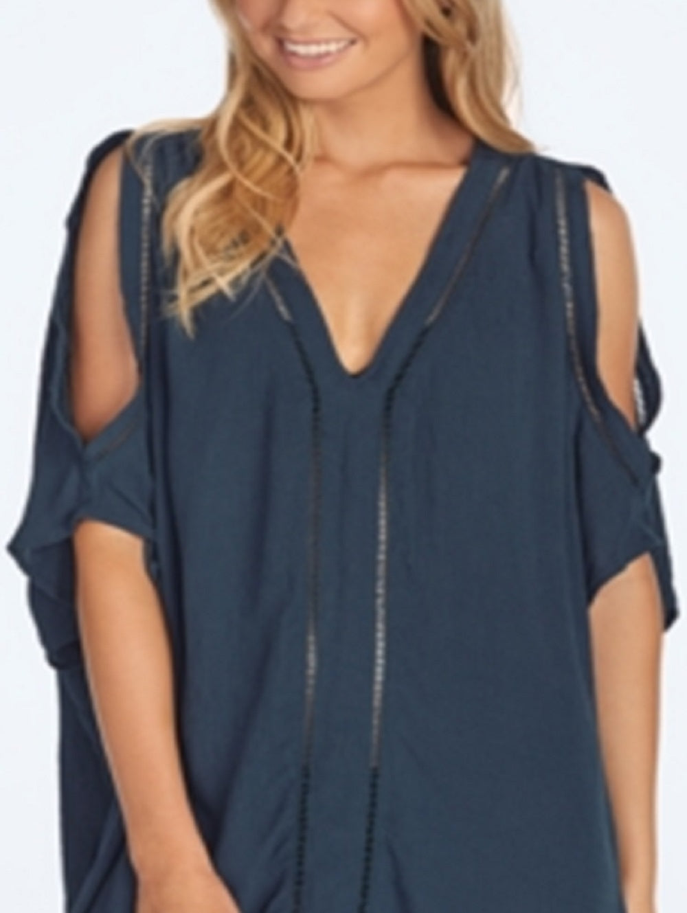 O estilo praiano e descontraído é seu com esta saída de praia fluida da Raisins | um modelo de cafetã descontraído acentuado por crochê chique e recortes que deixam seus ombros receberem o sol. | Decote em V; estilo pull-on | Acabamento em crochê no decote | frente e recortes | Recortes nos ombros; bainha estilo lenço