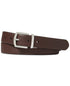 Oferecendo o dobro de versatilidade, este cinto social masculino apresenta dois tons diferentes de couro de bezerro curtido ao vegetal, cada um gravado em relevo para realçar seu grão característico. Largura; 1,25 | Fivela de uma única ponta | Suporte de metal com relevo Polo único | Ponta sutilmente pontiaguda
