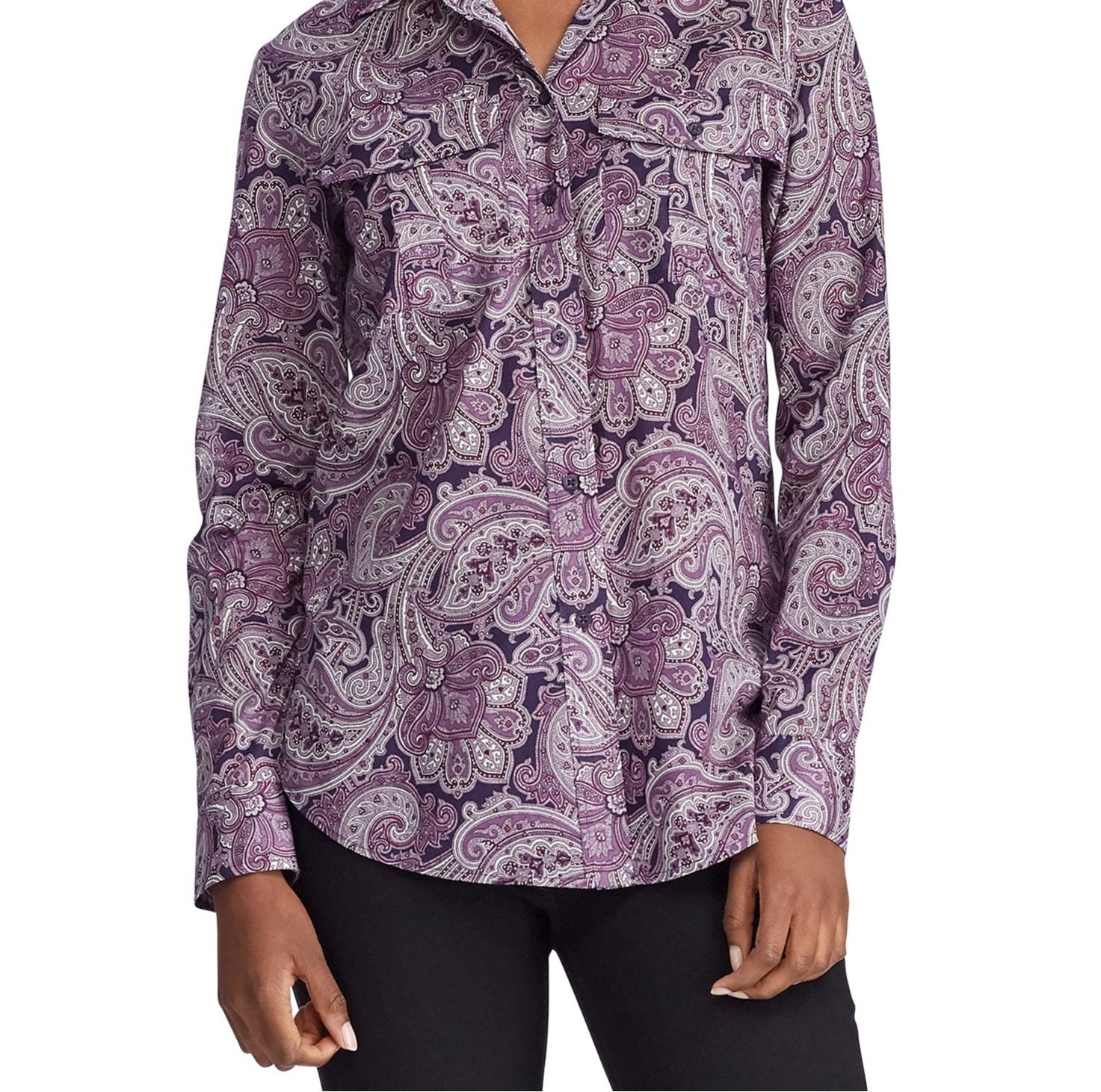 Ralph Lauren Blusa de algodão barroca com botões, tamanho X-G, roxa, feminina