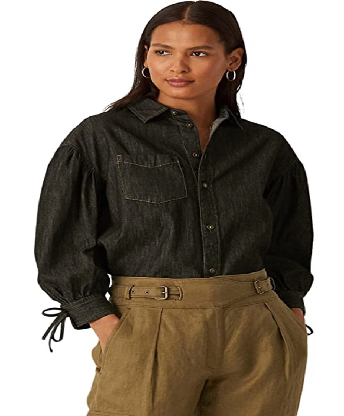 Exiba seu estilo formal com a blusa jeans Ralph Lauren com mangas bufantes, que apresenta um visual sofisticado | Corte reto | Gola ampla com carcela abotoada | Botões característicos com efeito de chifre | Mangas bufantes três quartos com punhos canelados com cadarço | Bolso frontal no peito esquerdo | Ombros caídos com pala nas costas