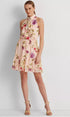 Vestido sem mangas de chiffon floral feminino Ralph Lauren, rosa, tamanho 10