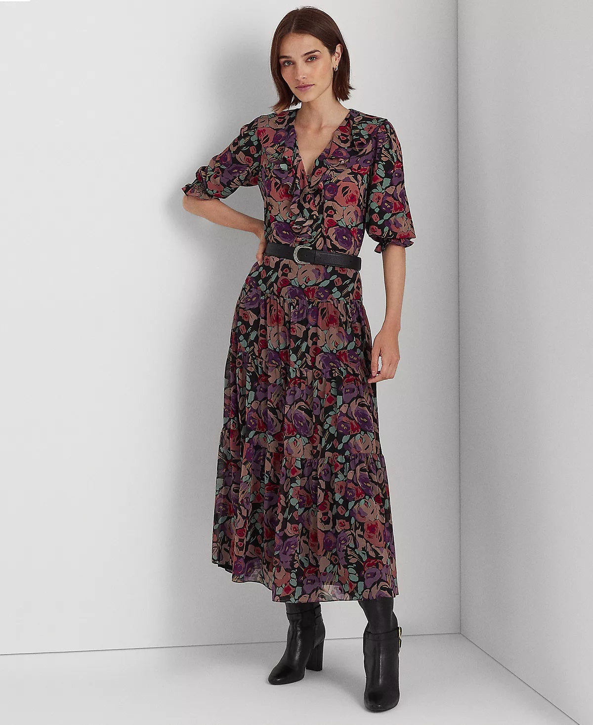 Os materiais primários que compõem este produto contêm no mínimo 20% de conteúdo reciclado | A saia longa Ralph Lauren Floral Crinkle Georgette apresenta um delicado georgette amassado e uma silhueta em A em camadas | Cintura elástica | Zíper oculto na costura lateral esquerda com fecho de colchete | Saia em camadas | Franzido nas costuras em camadas | Projetado para ficar abaixo do tornozelo