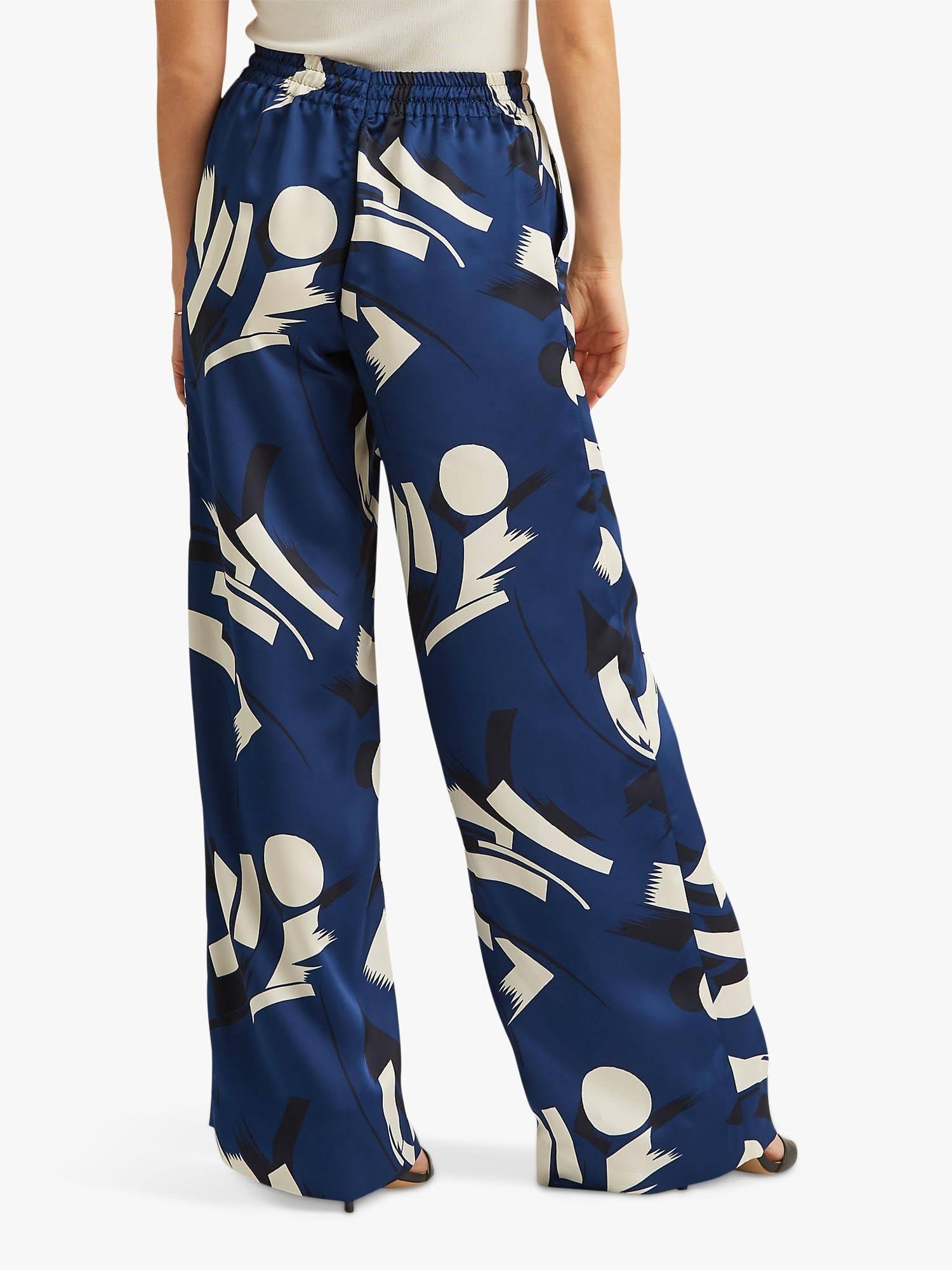 Mantenha-se confortável e estilosa usando as calças largas Charmeuse com estampa geométrica da Ralph Lauren, que combinam bem com todas as suas blusas e camisetas. | Silhueta longa | Design de perna larga | Cintura elástica com fecho de cordão | Pontas do cordão com a marca | Dois bolsos frontais angulares | Estilo pull-on
