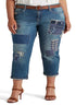 Deixe seu jeans único com a calça jeans Ralph Lauren Plus Size Patchwork Relaxed Tapered, que tem patchwork por toda a peça | Caimento afunilado relaxado | Construção clássica com cinco bolsos | Passadores de cinto na cintura | Braguilha com zíper e fecho de botão | Punhos enrolados | Parte externa; 50% algodão