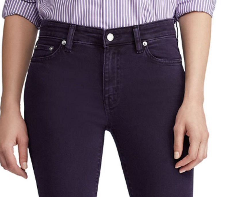 Calça jeans feminina Ralph Lauren Premier Straight Ankle, roxa, tamanho 18