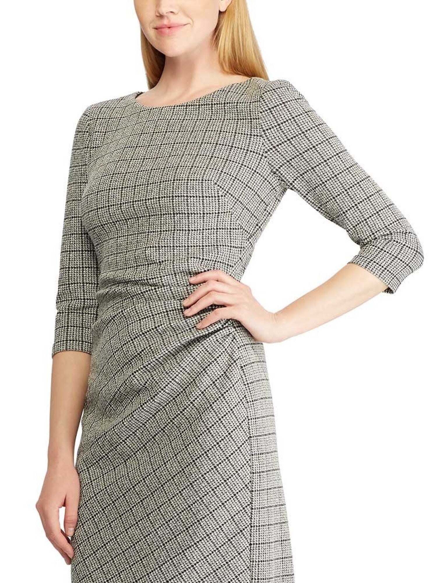Vestido Ralph Lauren Feminino Babados Pied-de-poule Manga Longa Gola Joia Acima do Joelho Preto Tamanho 14
