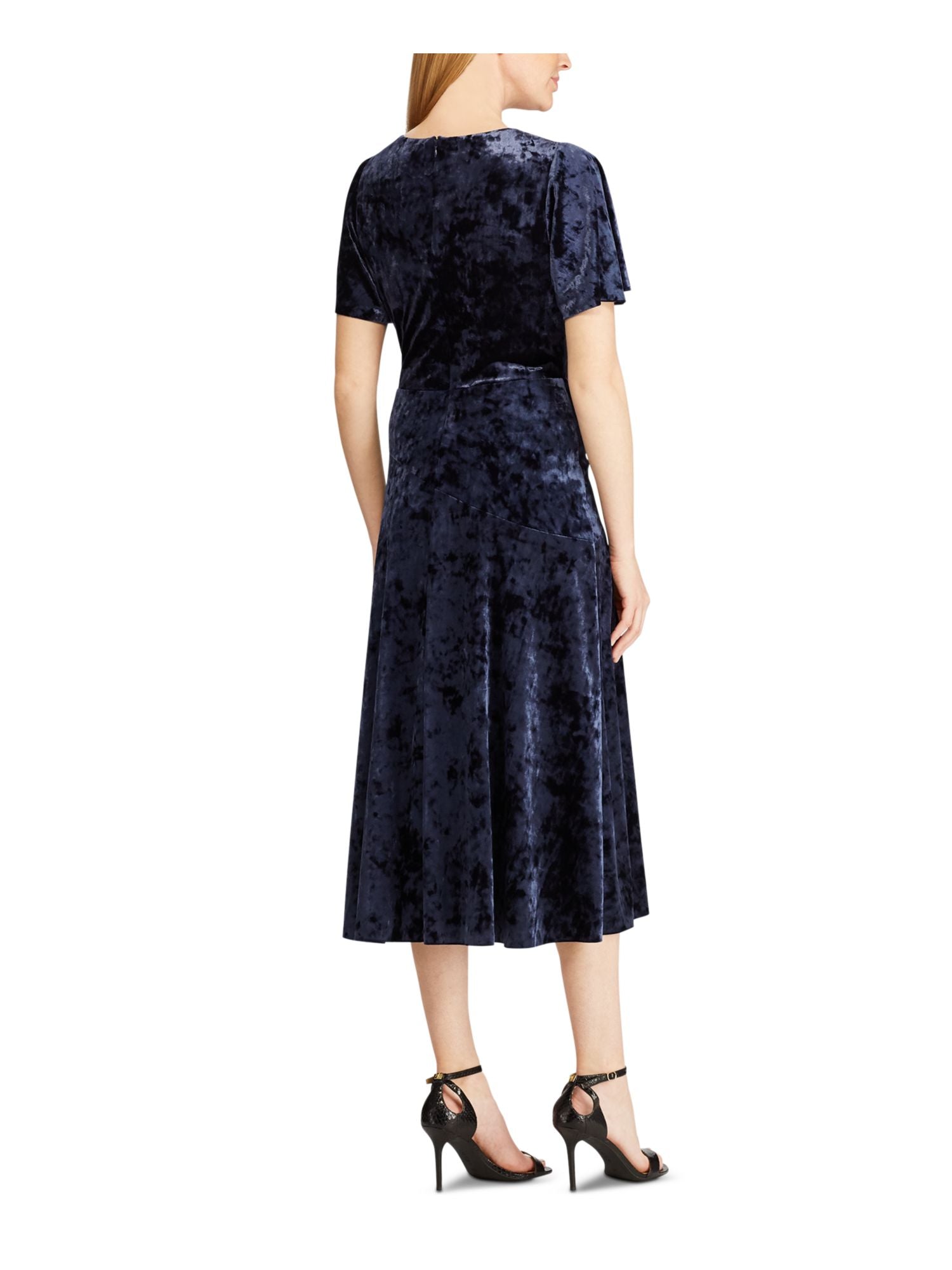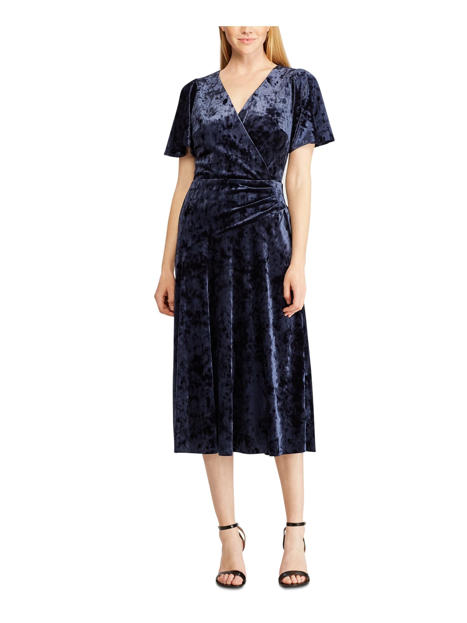 Vestido midi com decote em V e manga curta Ralph Lauren feminino, azul, tamanho 12