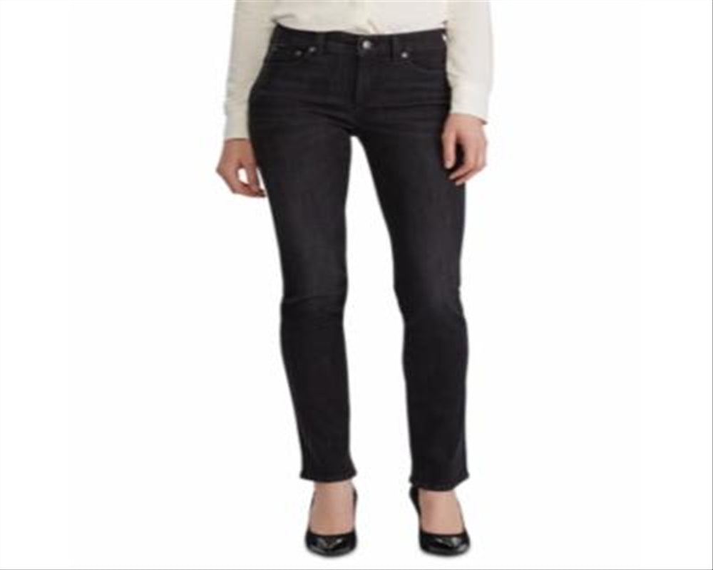 Calça Jeans Slimming Ralph Lauren Feminina Clássica Reta Cintura Média Preta Tamanho 4 Petite