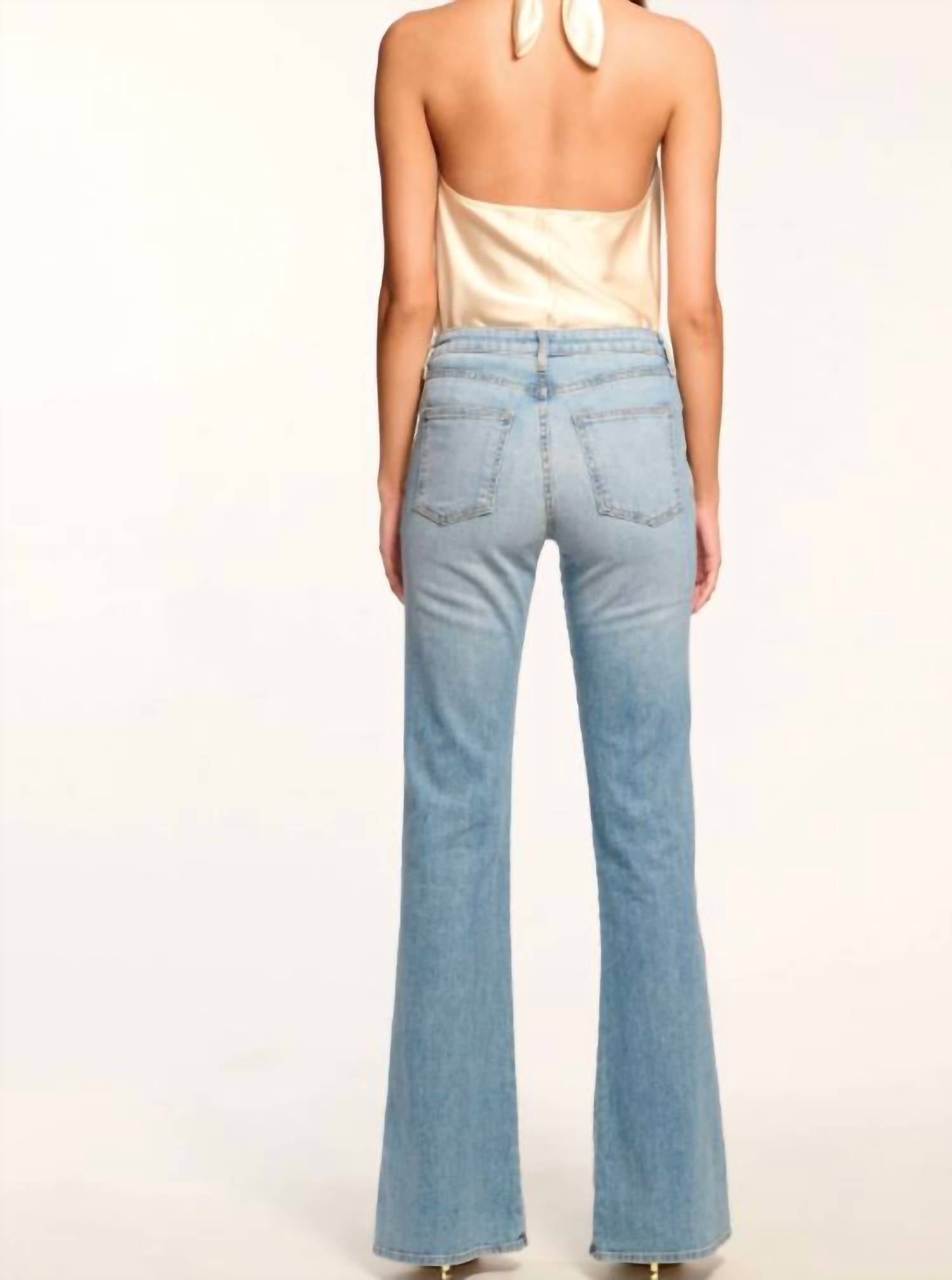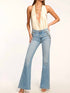Our number 1 bestselling jean, the Helena High-Rise Flare, never goes out of style. With sailor button details and a 70s style edge, this slim-fit jean has been carefully constructed to achieve a smooth flare shape without bunching at the knee, making your legs look miles long. Our signature Japanese denim holds you in while still allowing you to move and groove through your do-it-all days.