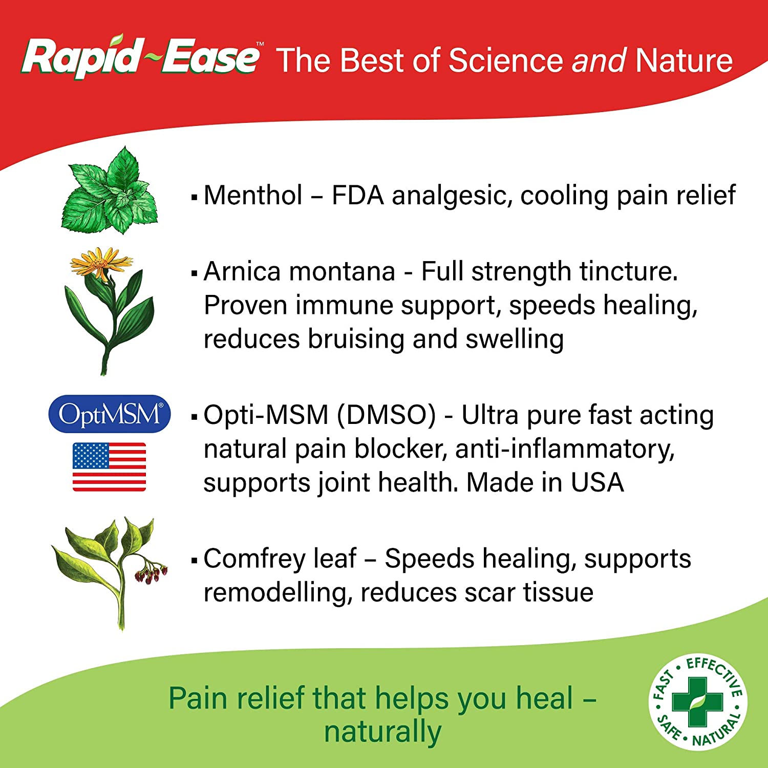 Creme para alívio da dor Rapid-Ease - Para entorses, distensões e dores musculares e nas 7 articulações - Mentol, arnica e folhas de confrei