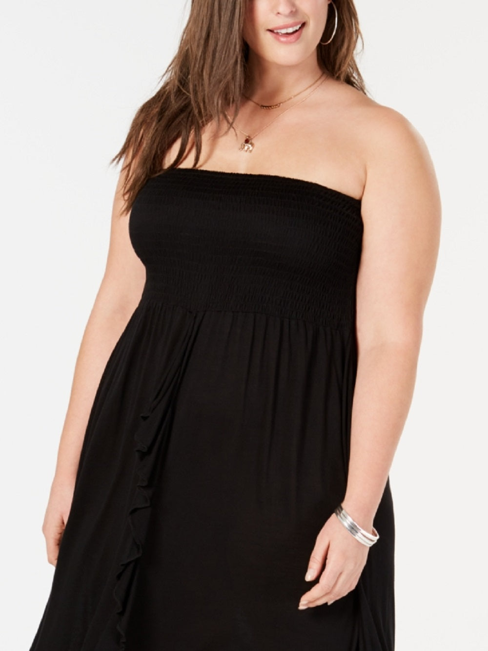 Decote tipo bandeau; modelagem pull-on | Comprimento midi | Importado | Corpete franzido; babados na frente | Fale com um estilista e receba aconselhamento especializado gratuito online ou em lojas para o seu guarda-roupa | Casa e muito mais. Reserve agora