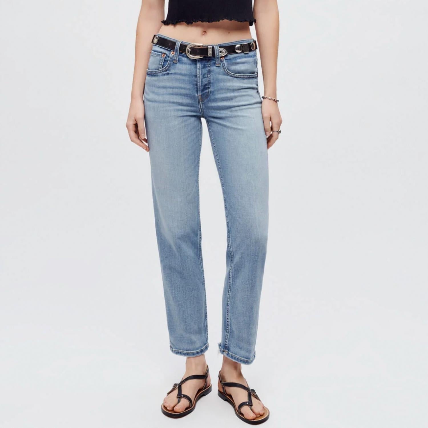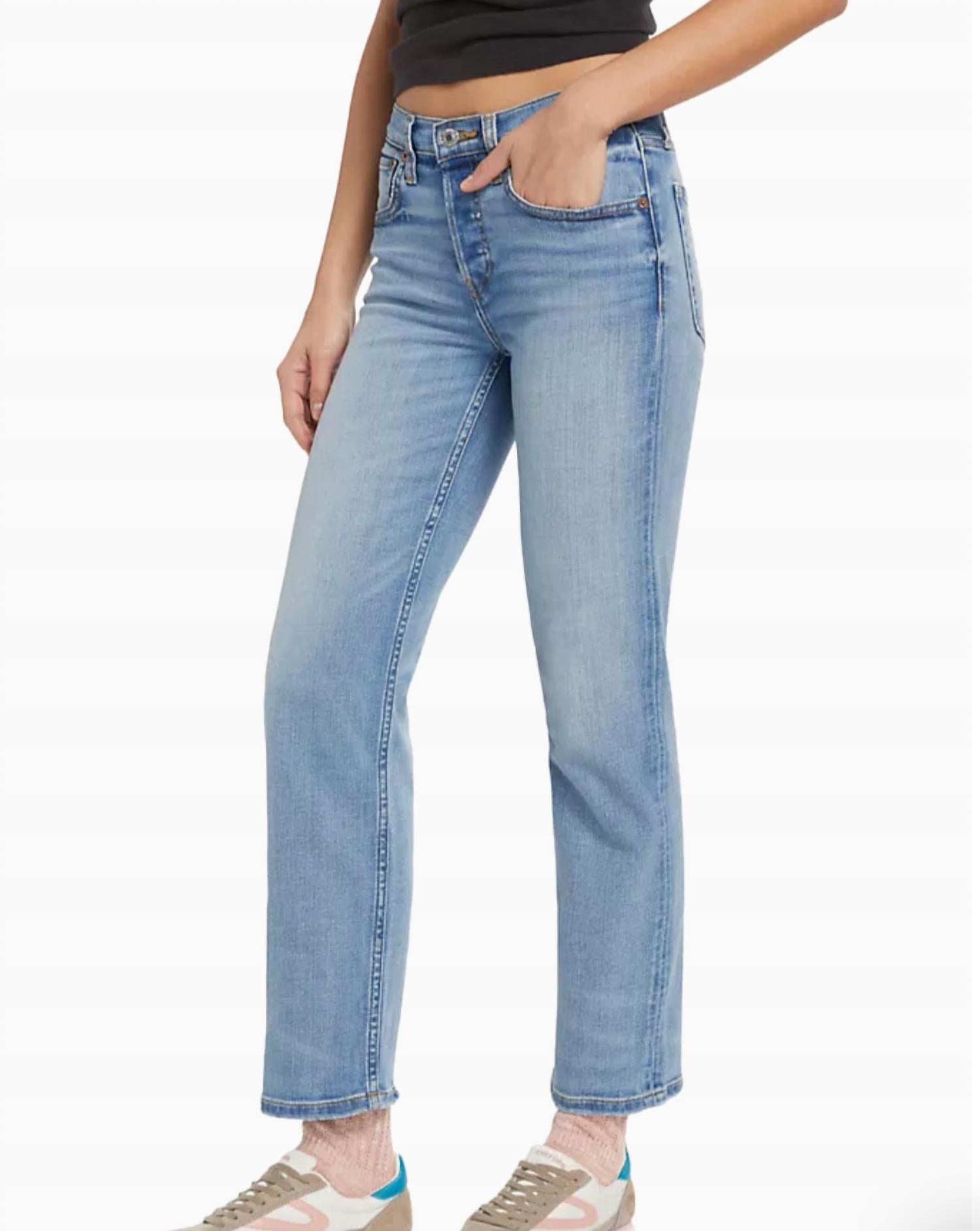 Esses jeans indispensáveis têm um caimento perfeito. Experimente a combinação perfeita de estilo vintage e conforto moderno com a Calça Jeans Stove Pipe de Cintura Média da RE/DONE. Confeccionada em jeans com elastano na cor exclusiva Hacienda, esta calça apresenta um estilo clássico de cinco bolsos e braguilha com zíper oculto e fecho de botão. Composição: 85% algodão, 13% poliéster, 2% elastano. Com cintura média de aproximadamente 24 cm, costura interna de aproximadamente 68 cm e abertura de perna de aproximadamente 36 cm, esta calça jeans foi projetada para um corte slim.