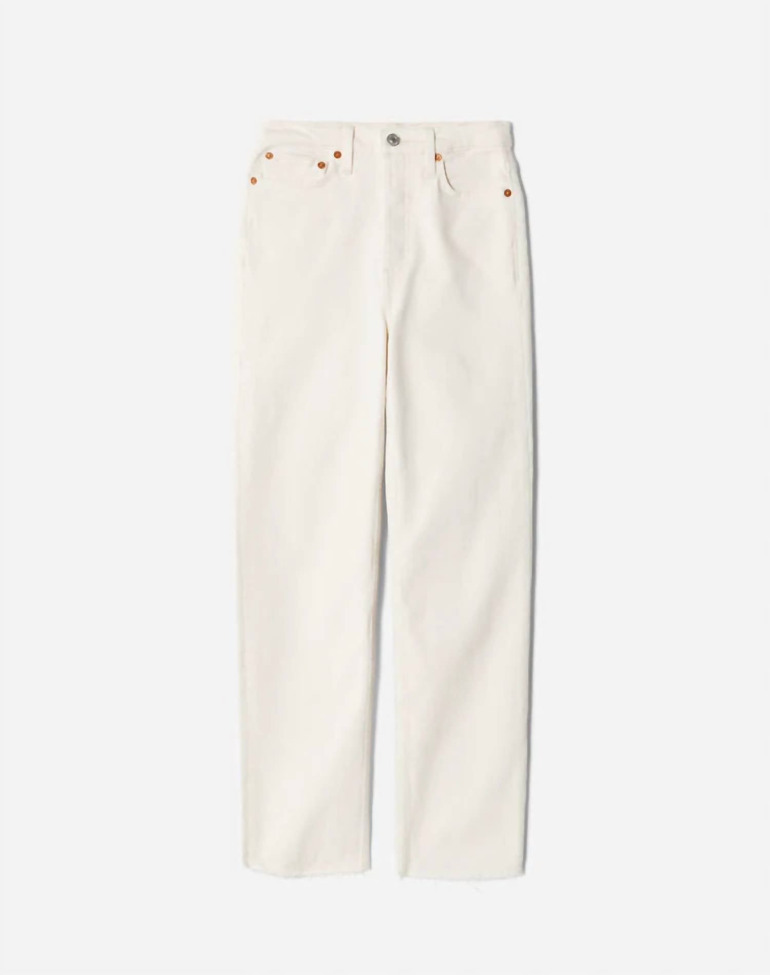 Esses jeans indispensáveis têm um caimento perfeito. Apresentamos a Calça Jeans Stovepipe dos Anos 70 da RE/DONE, uma homenagem moderna ao estilo clássico dos anos 70, confeccionada em Branco Vintage. Com cintura alta e caimento regular, esta calça jeans reta apresenta um padrão sólido em jeans stretch confortável, complementado por um elegante fecho de botão para um toque retrô. Desenhada para destacar um pouco o tornozelo ou complementar sapatos de cano alto, a calça jeans tem bainha sem acabamento para um estilo streetwear despojado. Perfeita para o seu guarda-roupa de férias de primavera, ela traz um toque atemporal e contemporâneo para qualquer ocasião.
