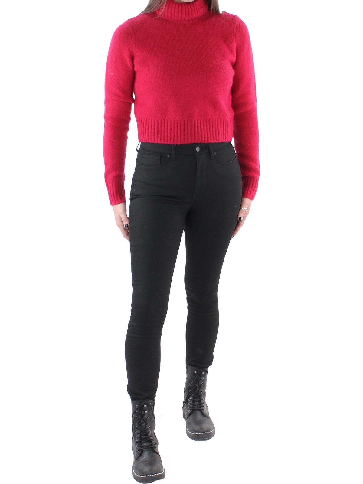 RE/DONE Suéter feminino de lã mista com gola alta slim, vermelho