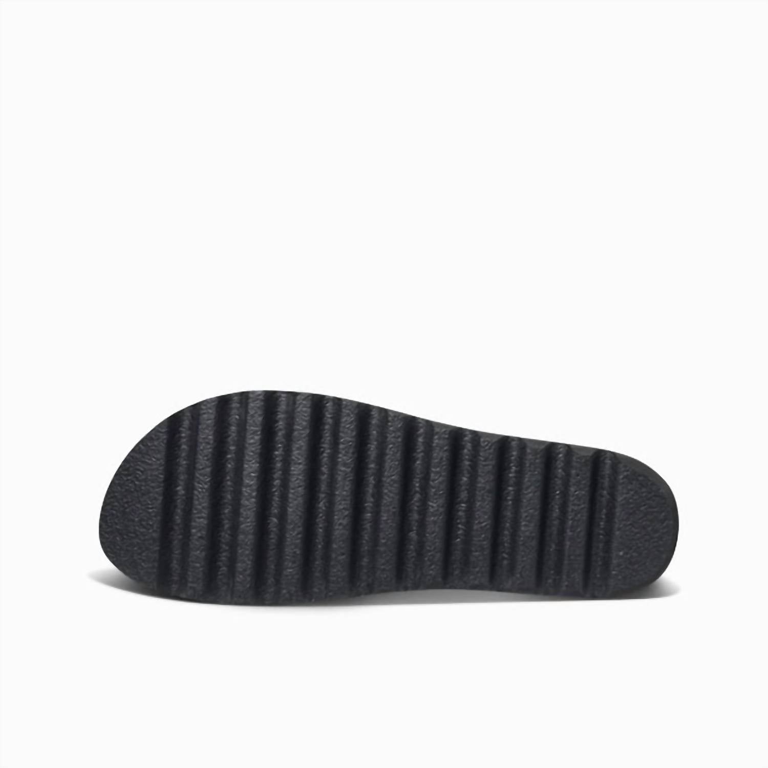 This sandal will take you from brunch to dinner and everything in between. Step into summer style with the Women's Cushion Rem Hi sandals by REEF in chic Coco Black. These sandals feature an open toe and flat heel design, ideal for vacation and minimalist trends. Crafted from a sustainable 100% post-consumer plastic material and rubber, they also boast a cushioned, bouncy footbed with superior arch support and heel cupping for all-day comfort. Complete with an elastic backstrap for a snug fit, these stylish sandals are perfect for summer adventures or a thoughtful Mother's Day gift.