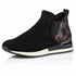 Introducing the Remonte Women's R2570 Suede Bootie in a sophisticated Black/Antique colorway, offering both style and comfort. With a leather suede upper and velvet lining, these booties promise a luxurious feel, while the soft removable insole and flexible TR sole ensure all-day comfort. The pull-on design with a wide round toe box adds practical ease and comfort for every outing. Perfect for enhancing your seasonal wardrobe with a touch of bling from the silver band detail at the heel.
