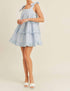 Transform your wardrobe with the Kenzie Dress by RESET by Jane, a stylish choice in a captivating Sky Blue. This sleeveless A-line babydoll dress features a charming squareneck with gathered detailing, playful lace ruffles, and tiered layers for added texture. Made from 100% Rayon, it offers a soft cotton feel, complete with wide adjustable tie shoulder straps and a lined finish to ensure comfort and style. Ideal for Fall holiday parties, this solid color mini dress captures a breezy and effortless elegance. Closure: Tie closure.