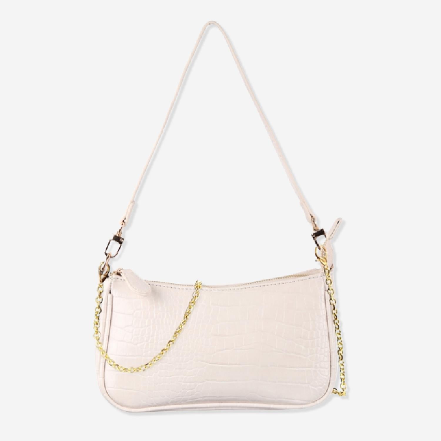 Elevate your accessory game with the Croc-textured Faux Leather Convertible Bag by Riah Fashion, a refined choice in a sophisticated ivory hue. This versatile bag features a sleek, crocodile-textured finish crafted from durable faux leather. Measuring 6 inches in height, 10 inches in width, and 2.75 inches in depth, it offers ample space for essentials while maintaining a chic, minimalist design. Carry it two ways with a 24-inch chain crossbody strap or an 11-inch faux leather shoulder strap, perfect for both everyday wear and special occasions.