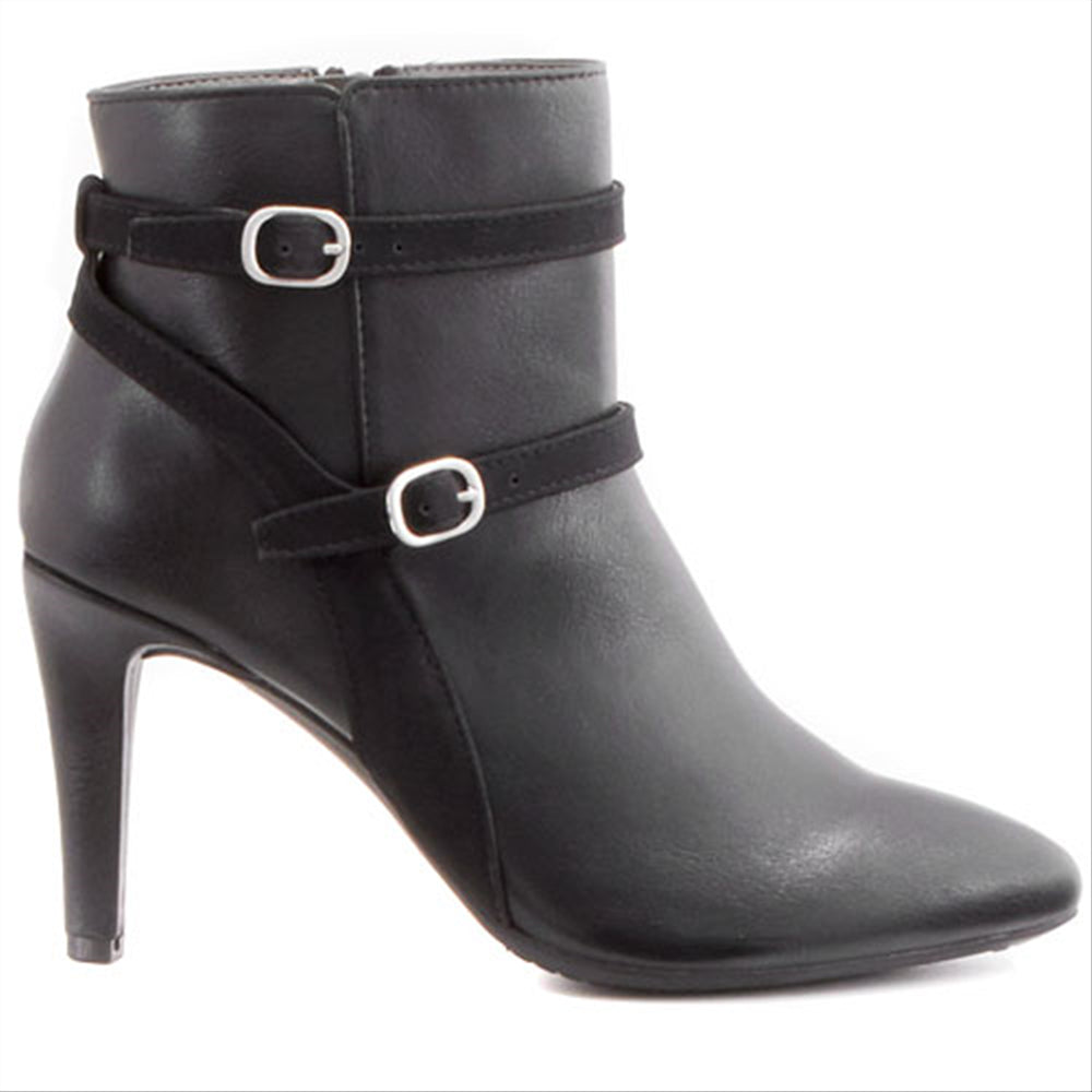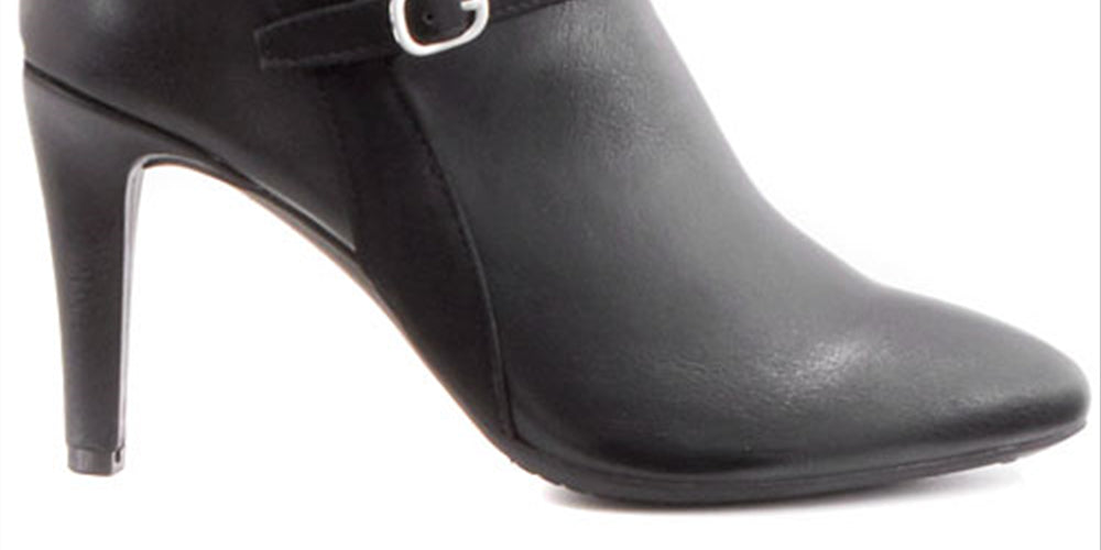 Bota Caleigh Preta - Feminina | Com salto alto e detalhes ousados de ferragens | esta bota elegante adiciona um toque especial à sua saída à noite | 3 | Salto 5'' Cano 5'' Circunferência 10'' Fecho de zíper interno Palmilha acolchoada Cabedal sintético Forro têxtil Sola sintética Importado