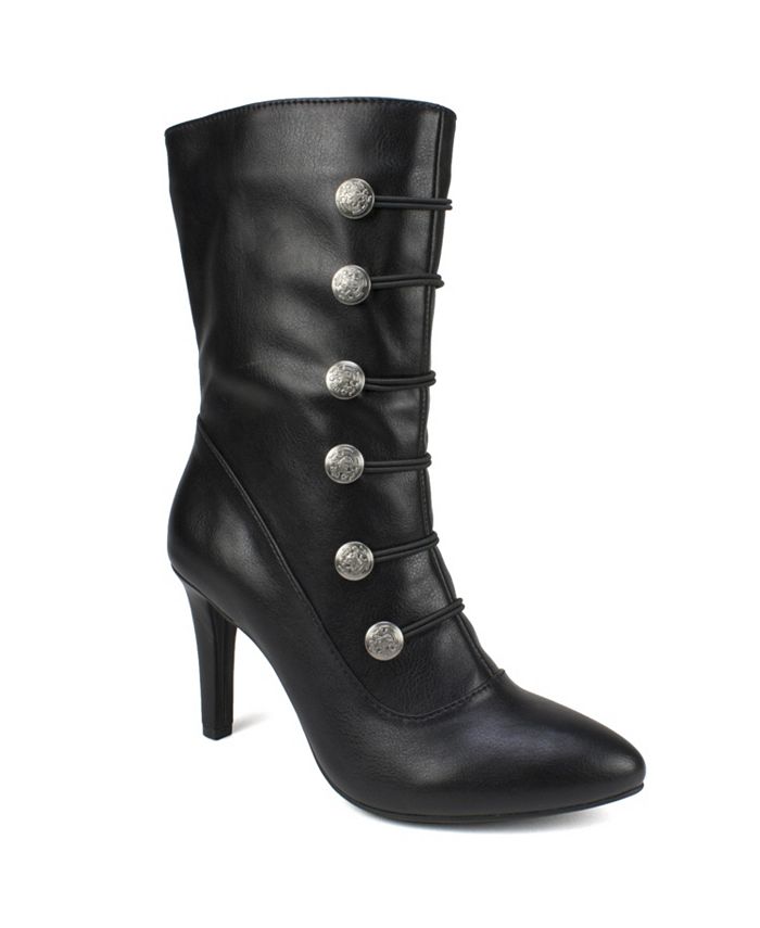 Botões ornamentais adornam as botas Chung da Rialto com um toque de inspiração vintage, enquanto um salto agulha elegante confere um toque moderno. | Salto agulha 3-1/2 | Altura do cano; 7-1/2; Circunferência; 12-1/2; medida em um tamanho 6 | Botas sociais com bico amendoado e fecho de zíper | Detalhes de presilha e botão no cabedal | Palmilha acolchoada para maior conforto; sola com sulcos para maior tração | Cabedal sintético; forro de tecido; sola sintética