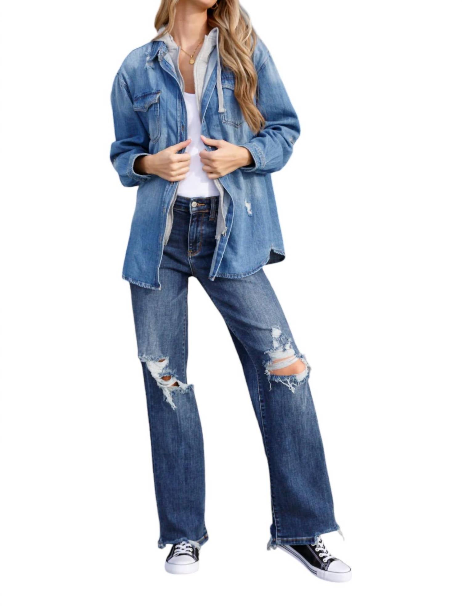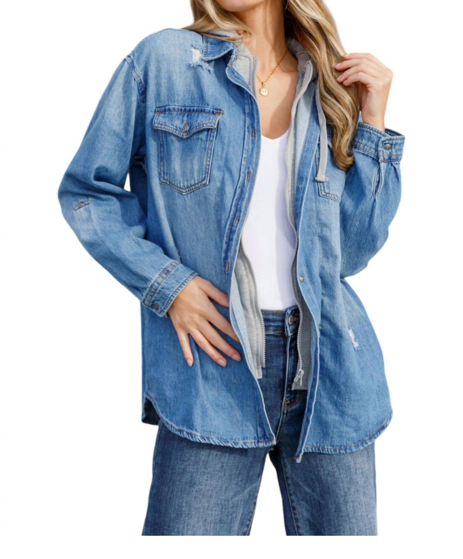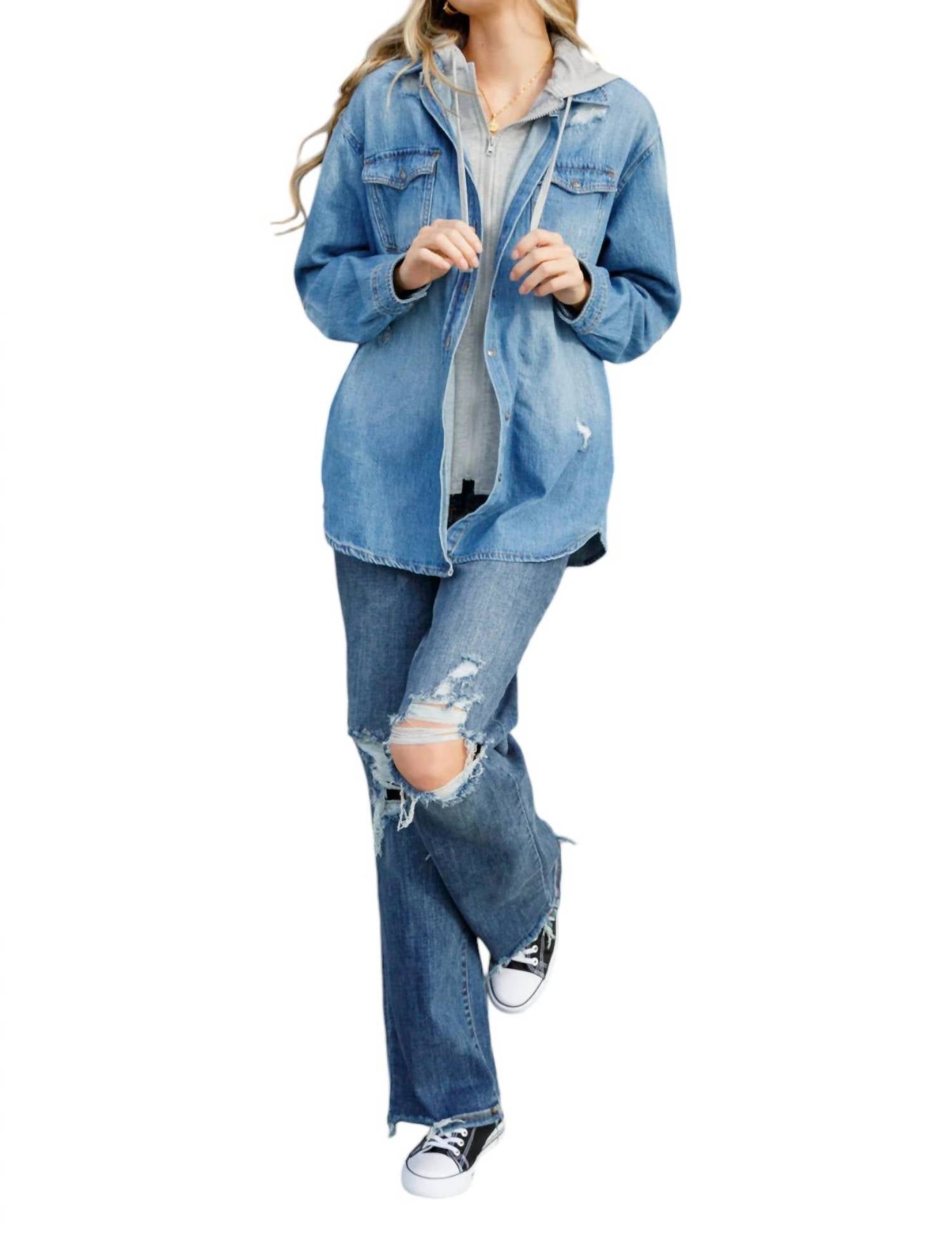 Bonita, casual e confortável. Esta jaqueta é um item essencial. Moletom com capuz em moletom francês, confeccionado em jeans leve. Fechamento com zíper e botão. Mangas com abas dobráveis. Silhueta relaxada. Composição: 100% algodão, detalhes: 65% poliéster, 35% algodão. Tamanho real.