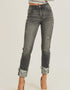 Risen - Mid Rise Frayed Cuff Ankle Straight Jeans