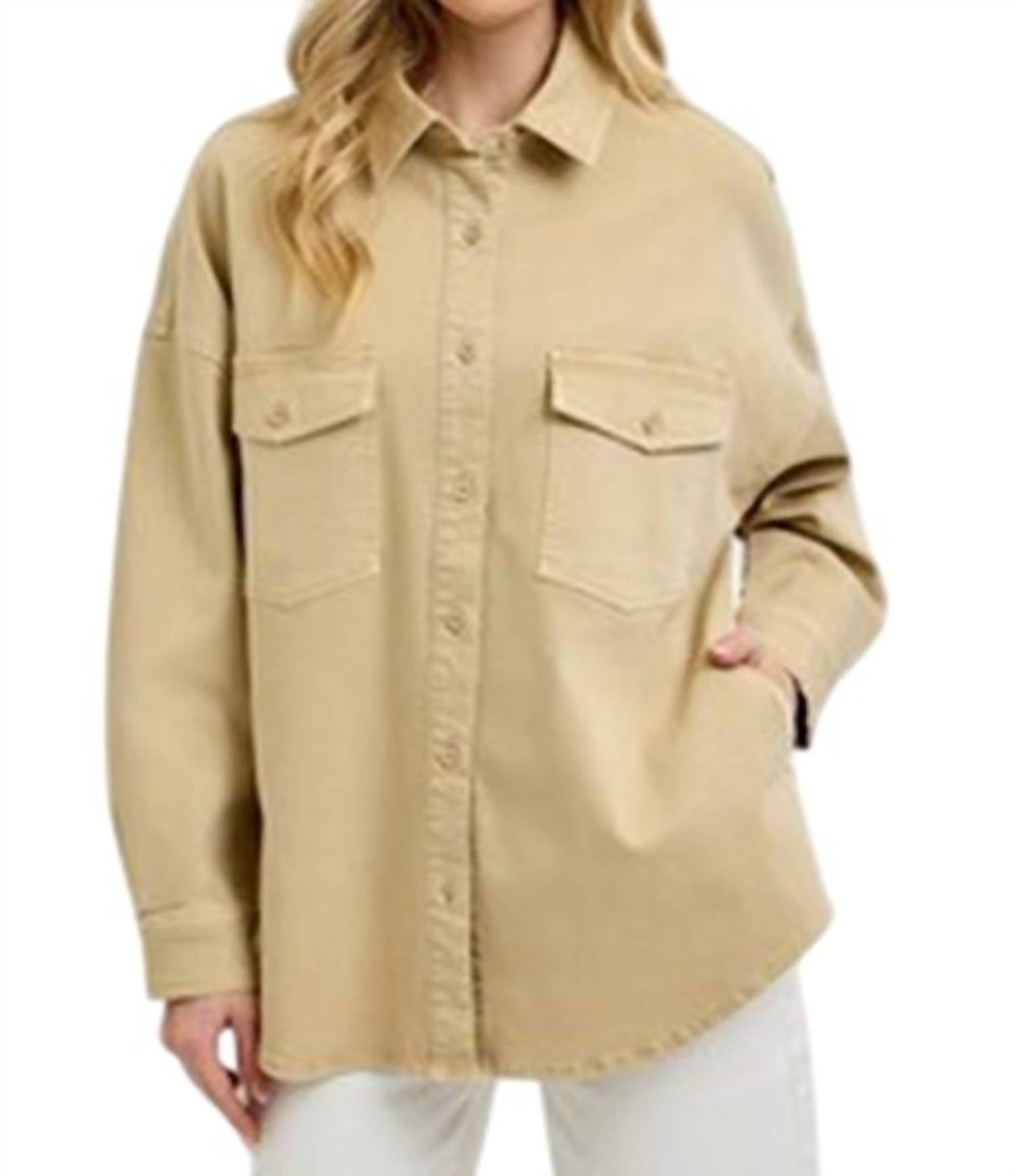 Bonita, casual e confortável. Esta jaqueta é um item essencial. Eleve sua coleção de streetwear com a Jaqueta Camisa Oversized da RISEN, com gola chique e bolsos práticos para o dia a dia. Desenhada em um tom latte sólido, esta jaqueta casual apresenta mangas compridas e um fecho clássico de botão. Fechamento: Botão. Cuidados: Lavar à mão e secar no varal. Perfeita para viagens e passeios de outono.