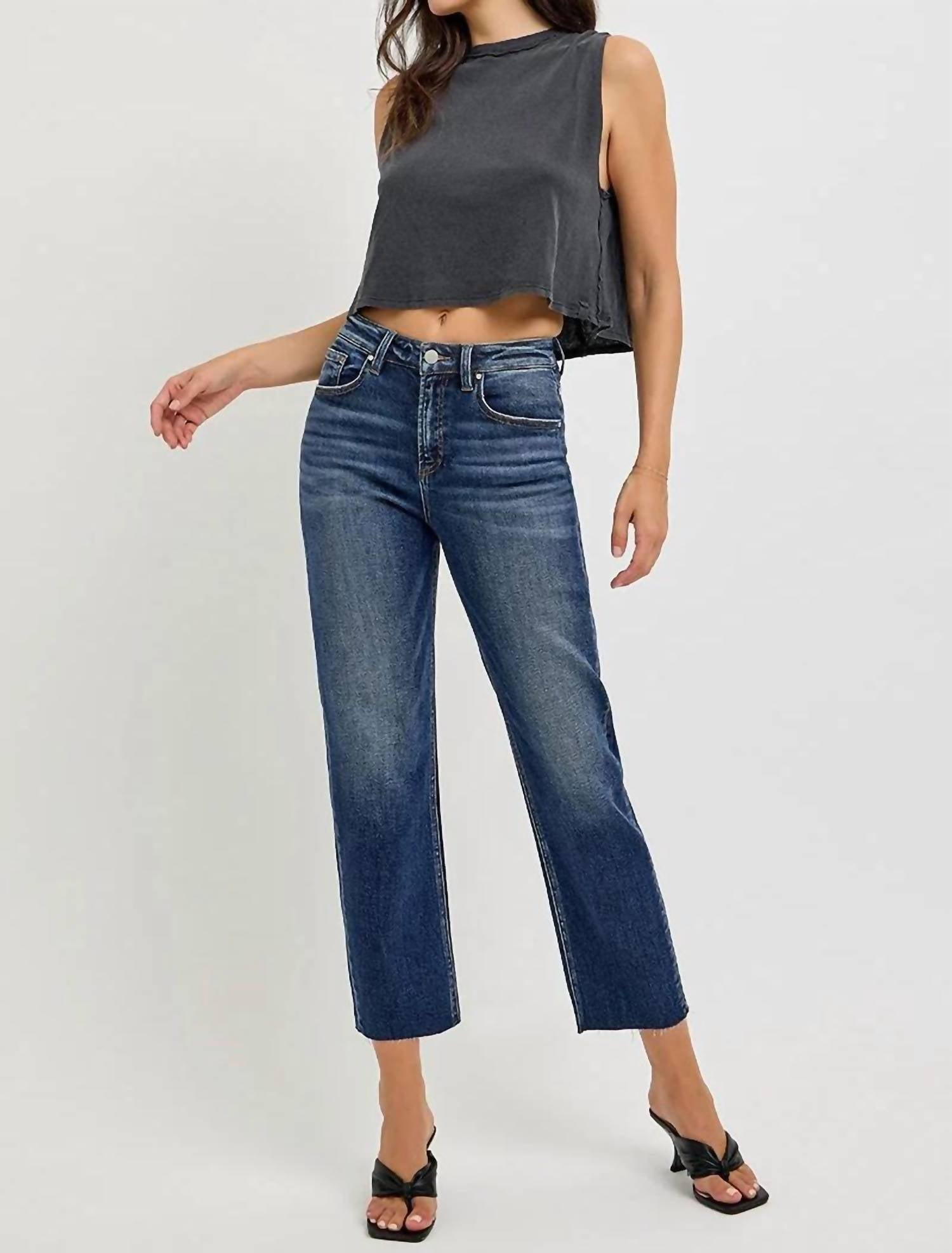 Risen - Tummy Control High Rise Crop Straight Jeans