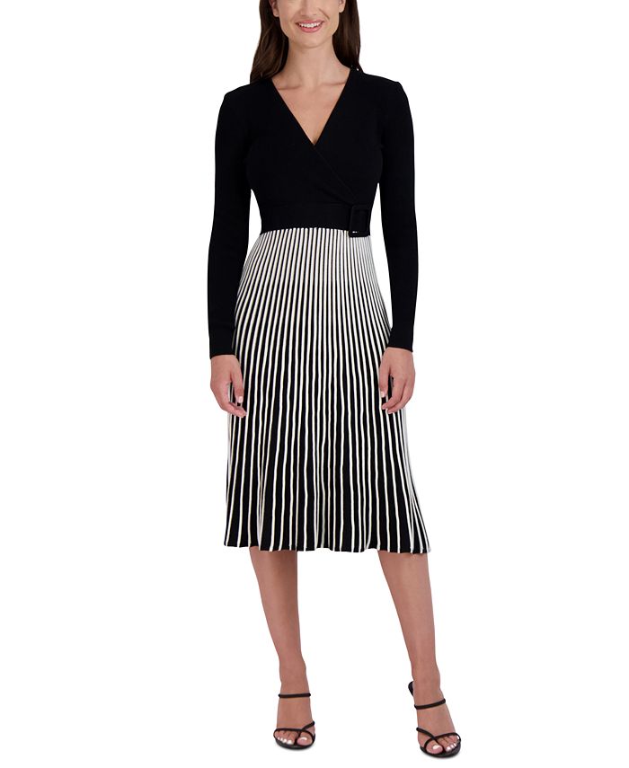 O vestido suéter bicolor de Robbie Bee tem bainha midi e é definido por um cinto de malha removível combinando. | Malha canelada; cinto na cintura | Estilo pulôver | Decote sobrepeliz | Sem forro | Importado | PP = 0-2