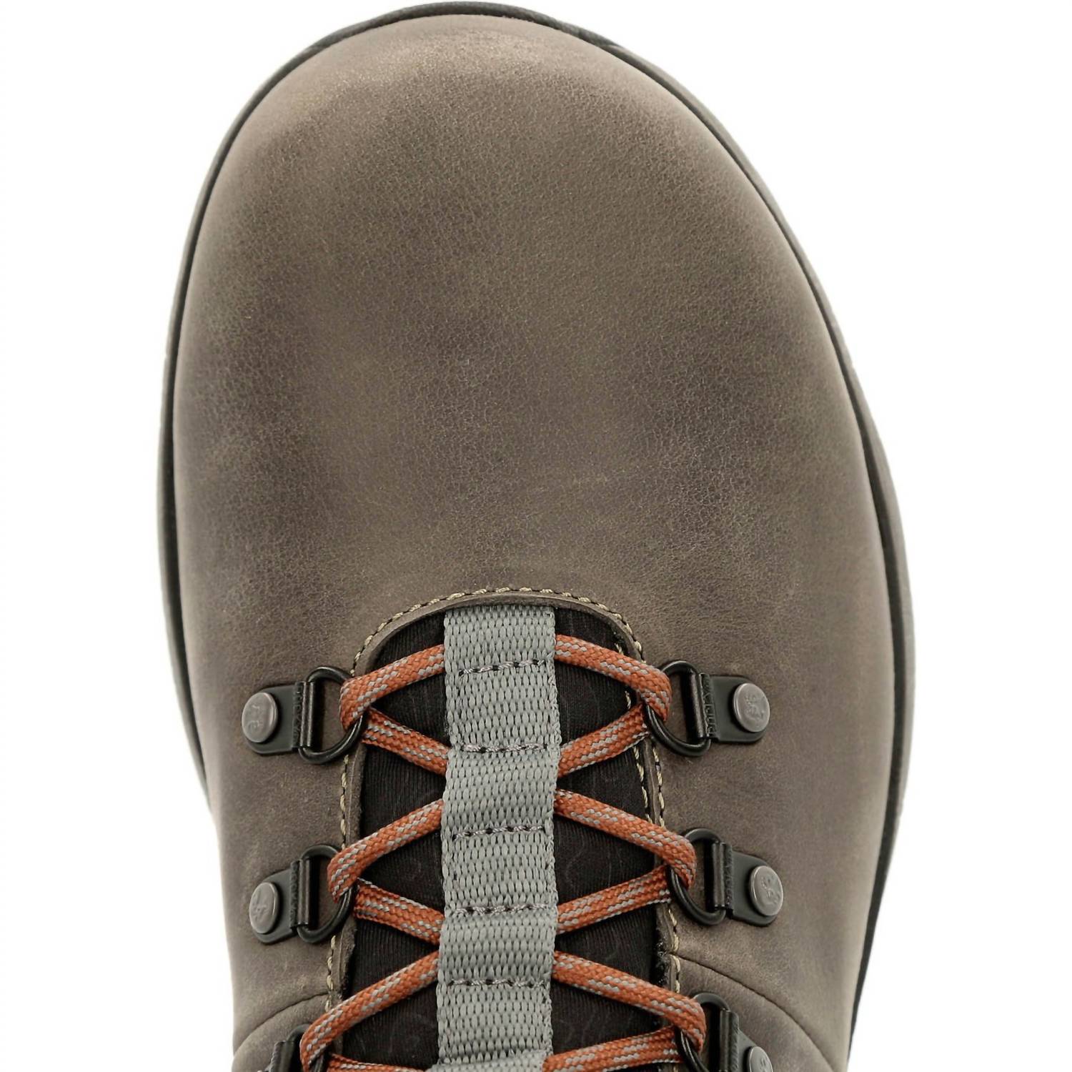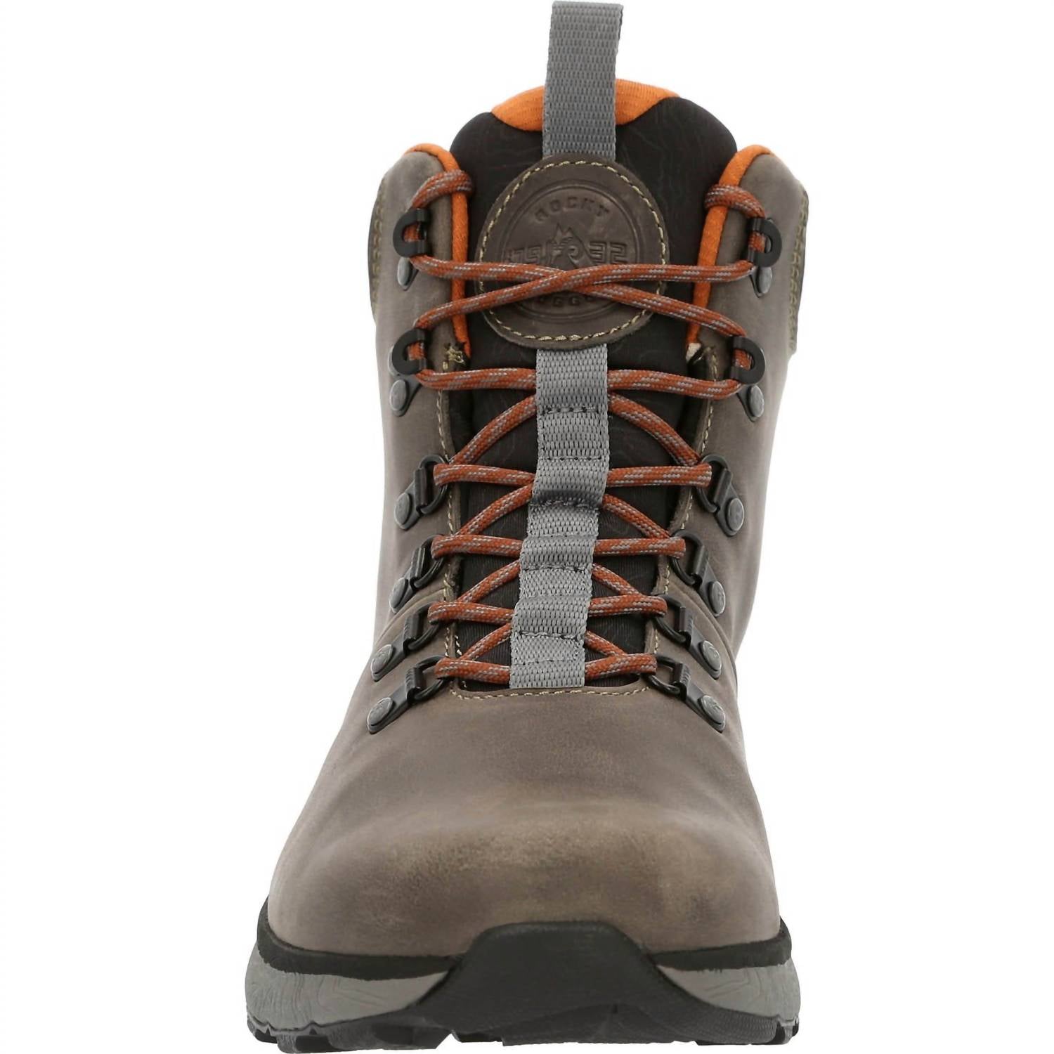 Esta bota de caminhada apresenta uma construção leve e flexível em cimento, com 15 cm de altura. A haste em fibra de vidro proporciona suporte, enquanto a entressola em EVA moldada, leve e flexível, garante conforto. O cabedal em couro de flor integral à prova d'água, aliado à impermeabilização eVent, mantém os pés secos em condições de chuva. A palmilha Rocky Rebound proporciona conforto extra, e o solado exclusivo LITEBASE Vibram proporciona tração. Pesando 500 g para o tamanho 10M, esta bota tem salto de 5 cm.