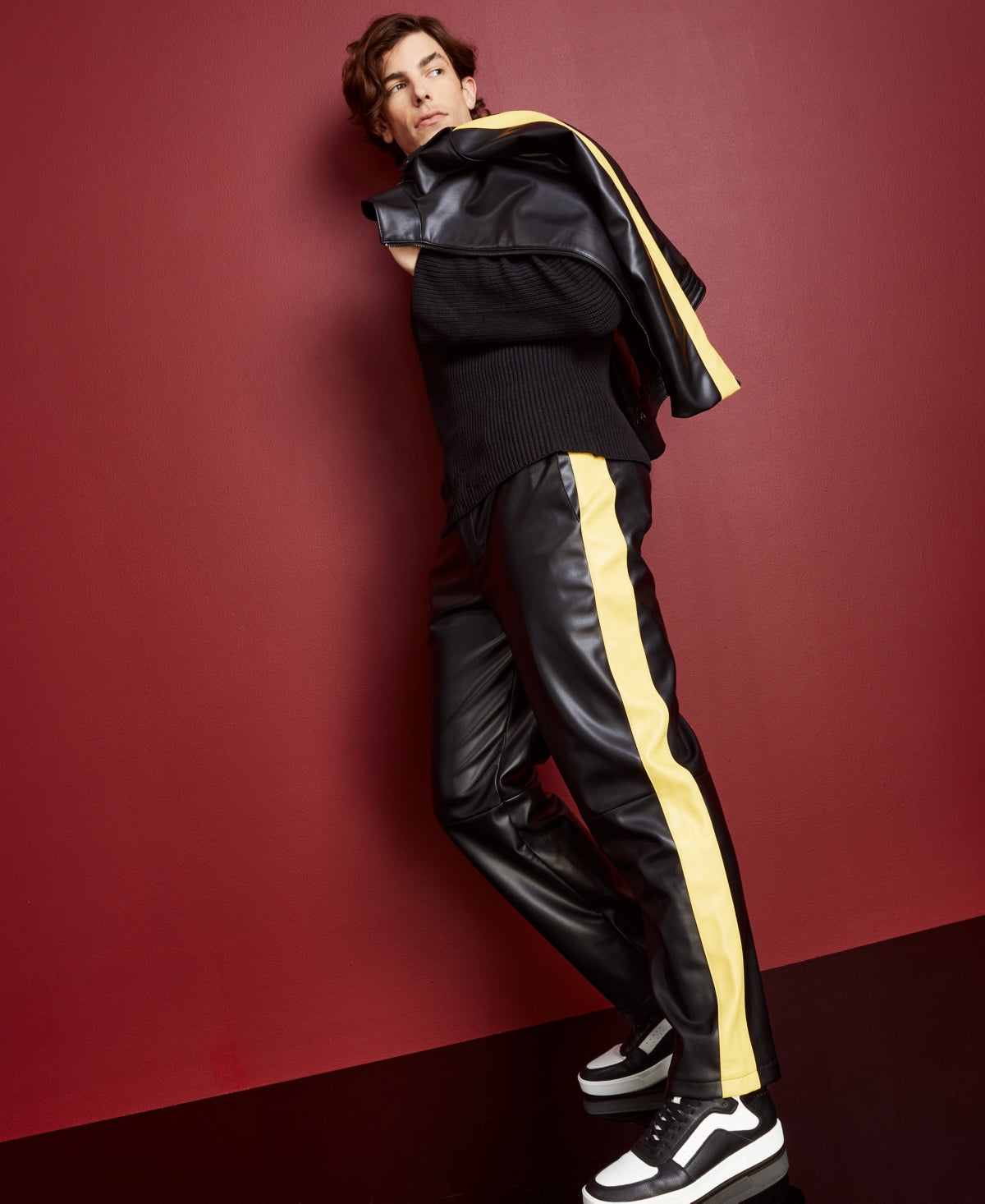 Dê um toque especial ao seu visual urbano com estas calças de motociclista elegantes em couro sintético da Royalty by Maluma | com um ajuste confortável e listras contrastantes marcantes nas laterais | O astro global Maluma lança sua segunda coleção de prêt-à-porter masculina e feminina Royalty by Maluma exclusivamente na | Para Maluma | esta coleção representa uma maneira de ele dar vida a um pedaço de suas raízes colombianas e da cultura latina e compartilhá-la com o mundo | (Liquidação)