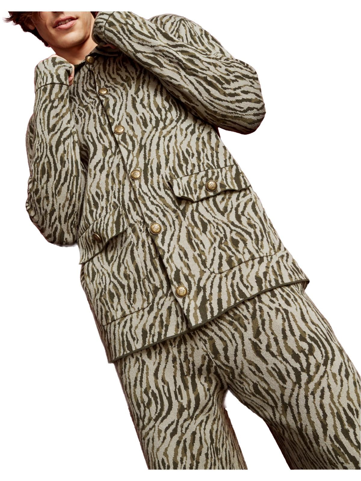 Jaqueta de suéter jacquard relaxada masculina Royalty by Maluma, bege, tamanho extragrande