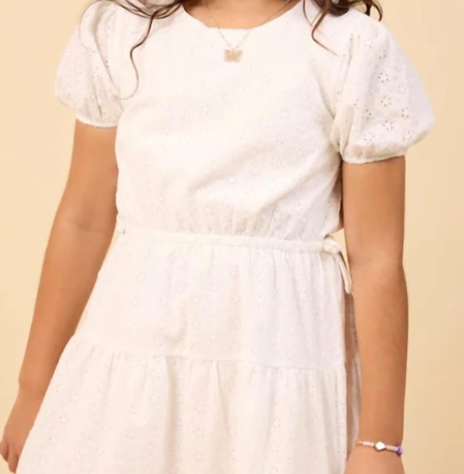 Introducing the Sadie & Sage Girl's Sundream Mini Dress, an elegant choice for casual spring outings and church occasions. Crafted with a textured pattern, this charming white mini dress is made from 92% polyester and 8% spandex, featuring a 100% cotton lining for added comfort. It offers easy care with machine wash instructions. Designed specifically for girls, this dress ensures style and comfort for any spring event.