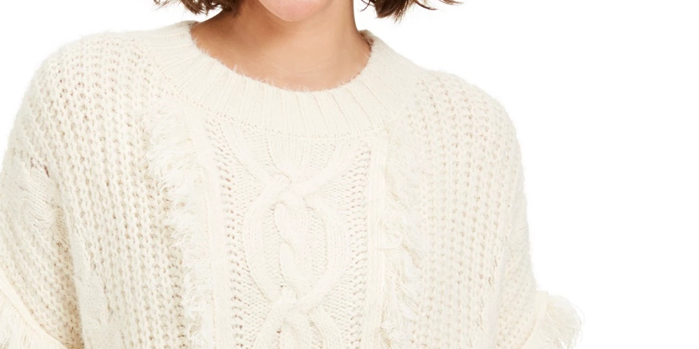 Decote redondo | Malha trançada e detalhe de franjas na frente | Acrílico/nylon | Lavar à mão | Importado