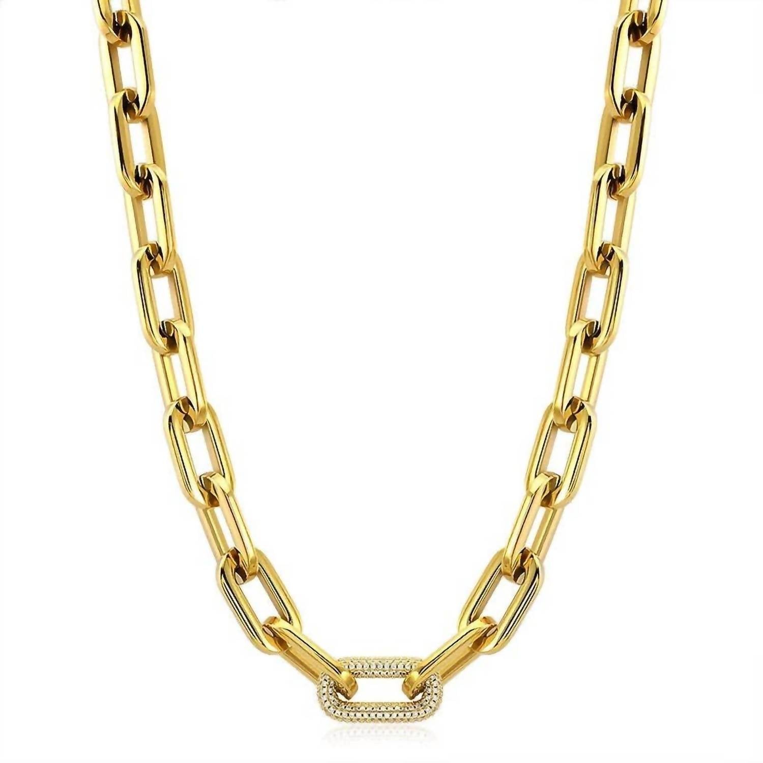 Introducing the Women's Jenna Pave Chain by Sahira Jewelry Design, a stunning piece that adds a touch of edgy chic to any ensemble. This fashion necklace features an 18K gold plating over durable sterling silver, ensuring both water and tarnish resistance for lasting shine. Crafted to be hypoallergenic, this bold gold chunky chain is the perfect statement piece for layering or wearing solo. Ideal for any occasion, Jenna Pave is your go-to accessory for effortless elegance.