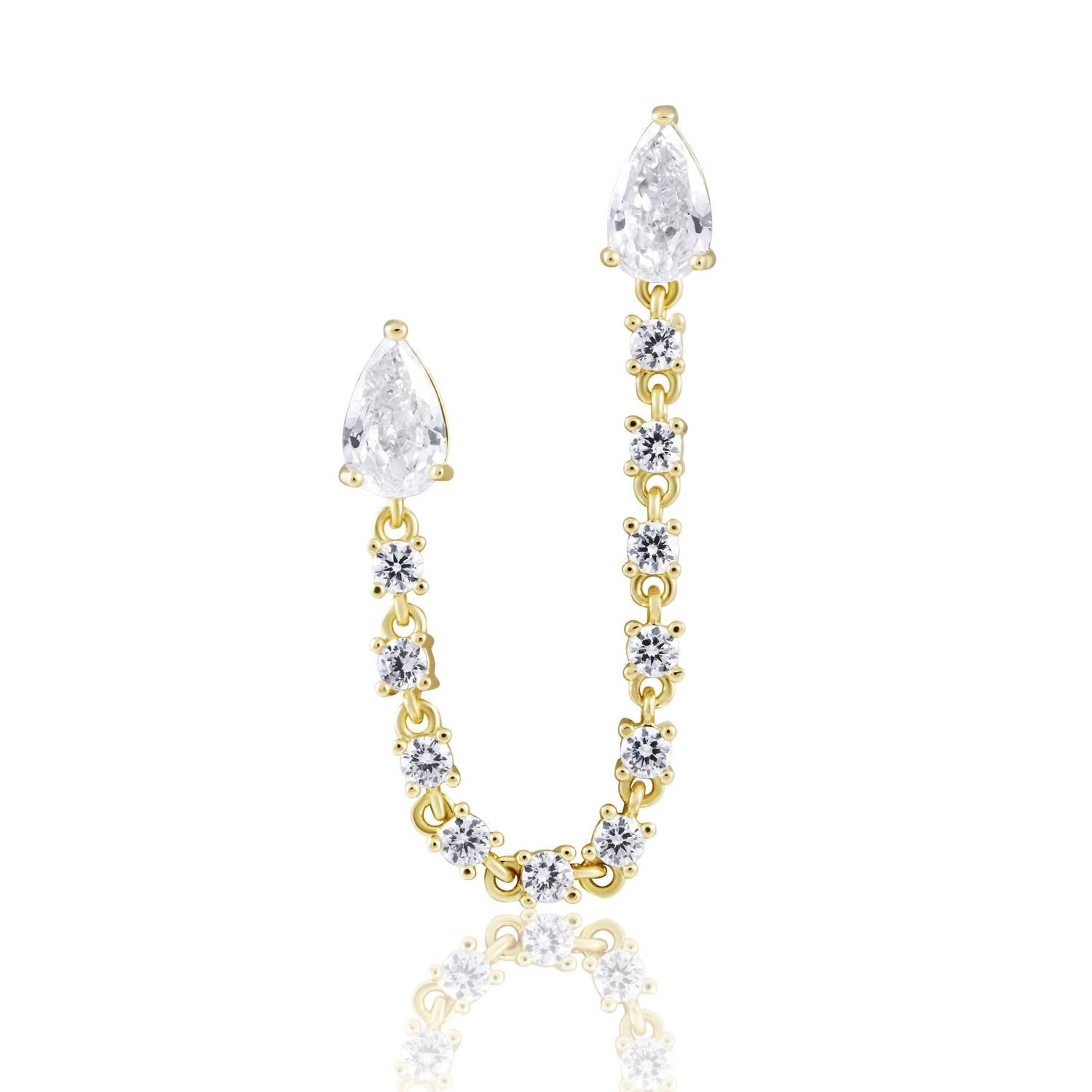 Elevate your style with the Women's Delilah Double Stud Earring by SAHIRA, featuring a chic double stud design in polished gold. Measuring a 2" chain drop, this accessory dazzles with beautiful CZ stones and is crafted from 18k gold plated over stainless steel for a luxe finish. Perfect for any occasion, these earrings are hypoallergenic and tarnish resistant, ensuring long-lasting wear and comfort. Make a statement with these elegant studs that effortlessly spark conversations.