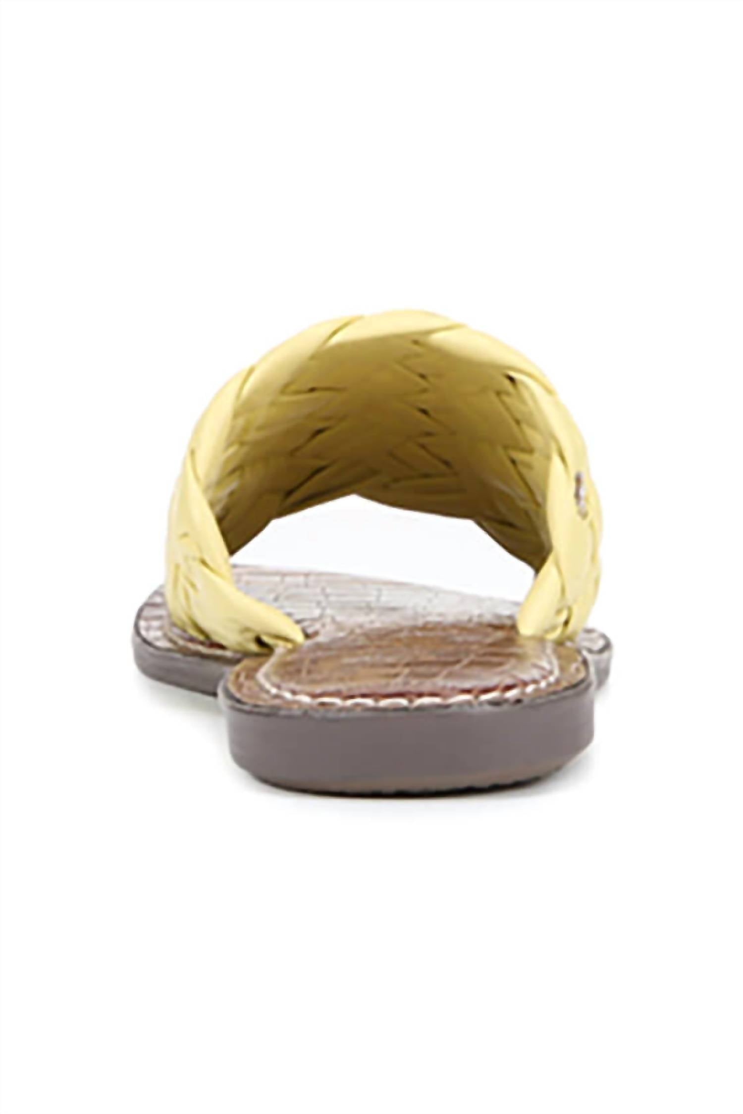 Step into summer elegance with the Griffin Woven Slide Sandal by Sam Edelman. Crafted from butter yellow leather, these stylish slides feature intricate woven detailing for a chic upgrade to your seasonal wardrobe. With a flat heel design and open toe, they offer comfort without sacrificing on trendsetting style. Featuring a convenient slip-on closure, these slides have a synthetic insole and a modest platform height of 0.5" for added ease.