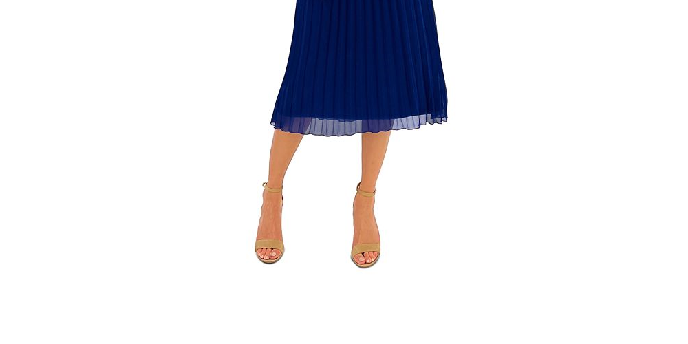 Crie um look deslumbrante com o vestido midi plissado da Sam Edelman | elegantemente definido por uma cintura bufante. | Comprimento aproximado de 47, do centro do pescoço até a bainha. O comprimento é baseado no tamanho 6 e varia 1/4 entre os tamanhos | Ajustado no peito e na cintura; saia estruturada em corte A que se ajusta ligeiramente sobre os quadris | Chiffon; Tecido liso | transparente | Decote redondo; Silhueta em corte A