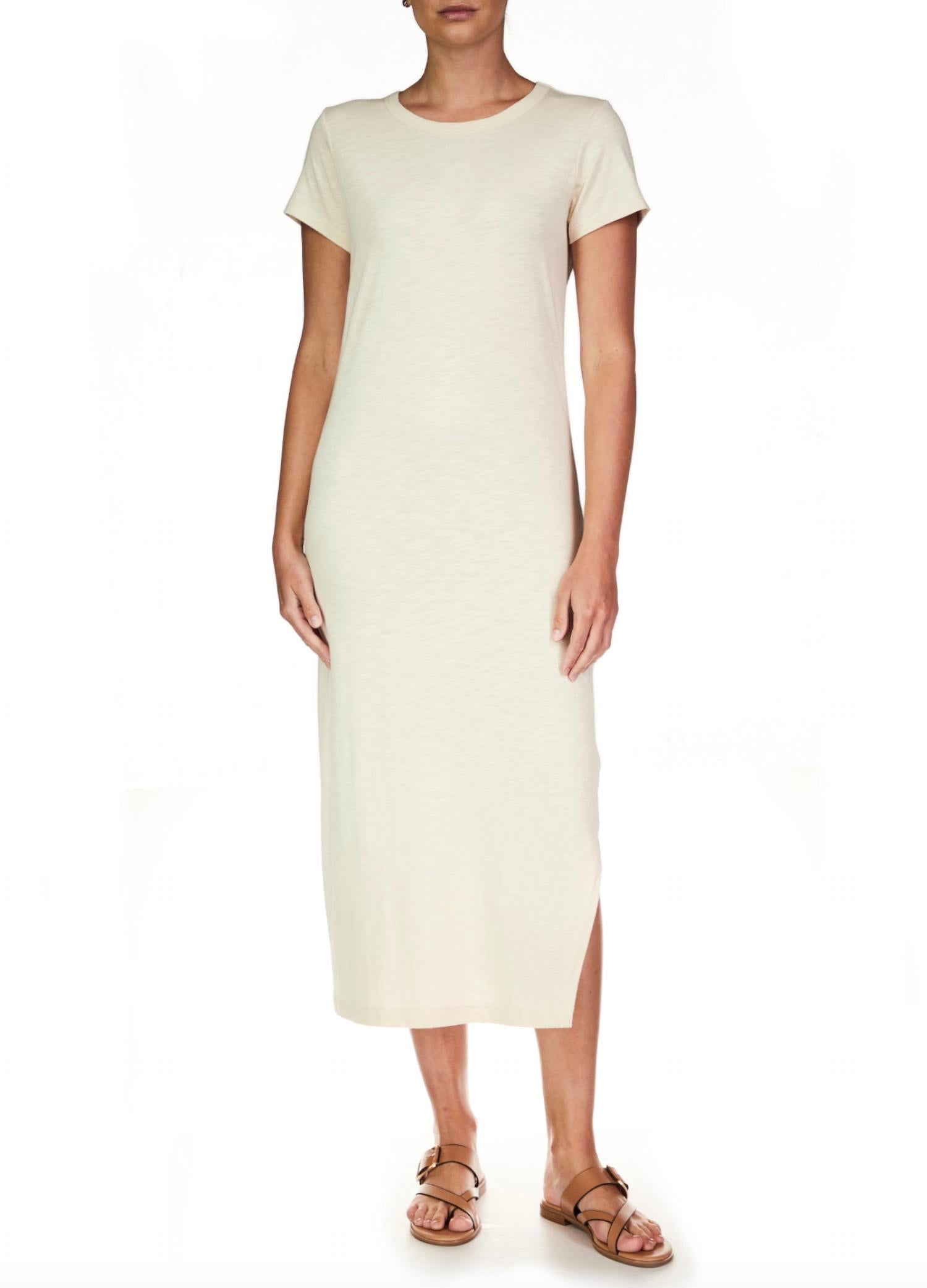 Quem não ama um bom vestido longo? Este você vai usar em todas as estações. 55% algodão orgânico, 45% rayon. Fabricado na China. Lavável à máquina. Sem forro. Modelagem pull-on. Tecido jersey leve com fenda lateral.