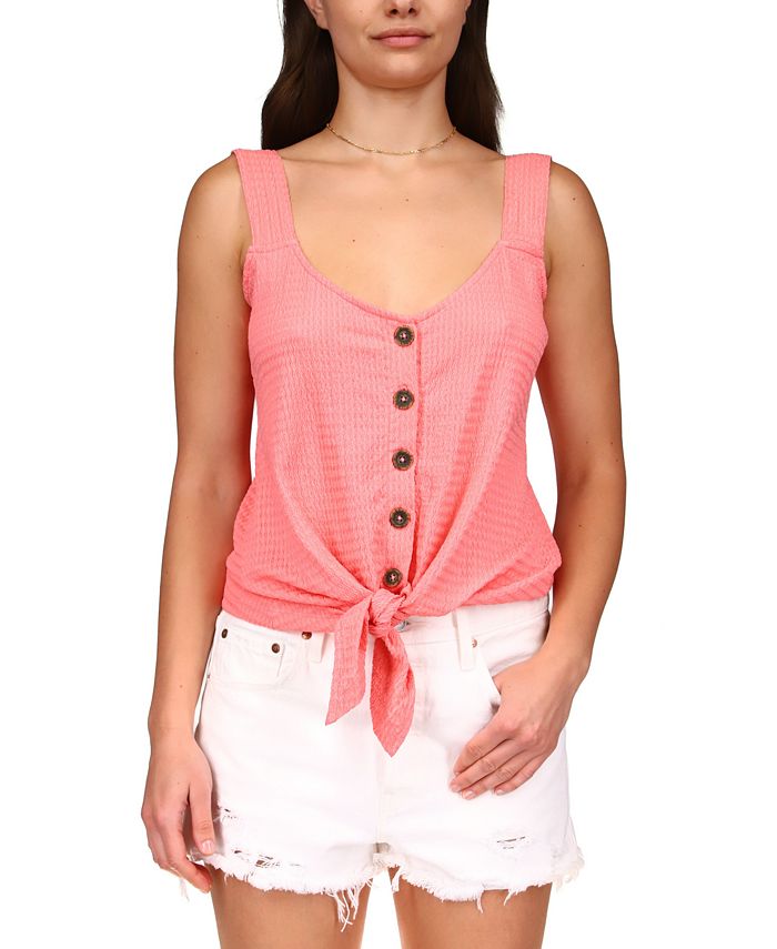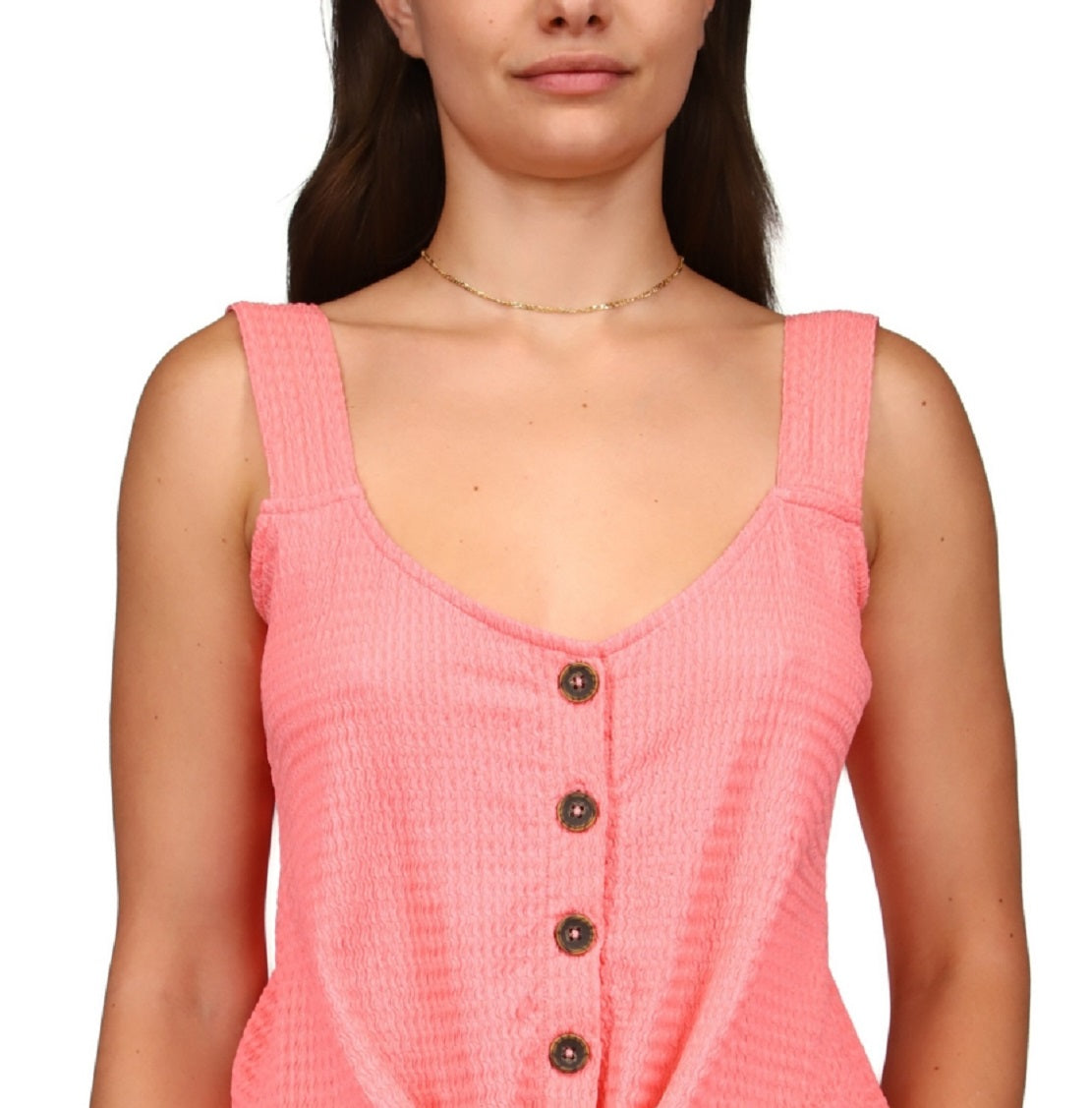 Renove seu guarda-roupa para o clima quente com esta regata estilosa com botões da Sanctuary. | Gola redonda; fechos de botão | Amarração na bainha | Sem mangas | Poliéster/elastano | Lavável à máquina | Importado
