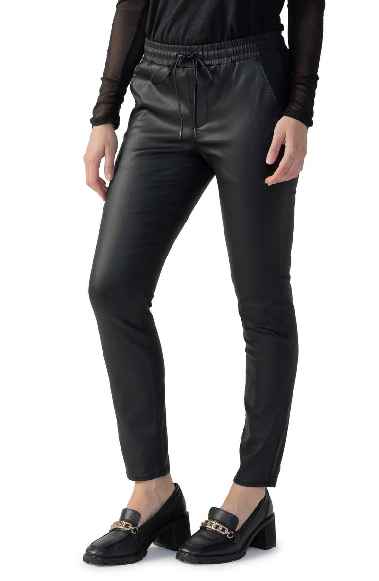 Calça feminina Sanctuary Hayden com amarração na cintura e couro sintético, preta, tamanho médio