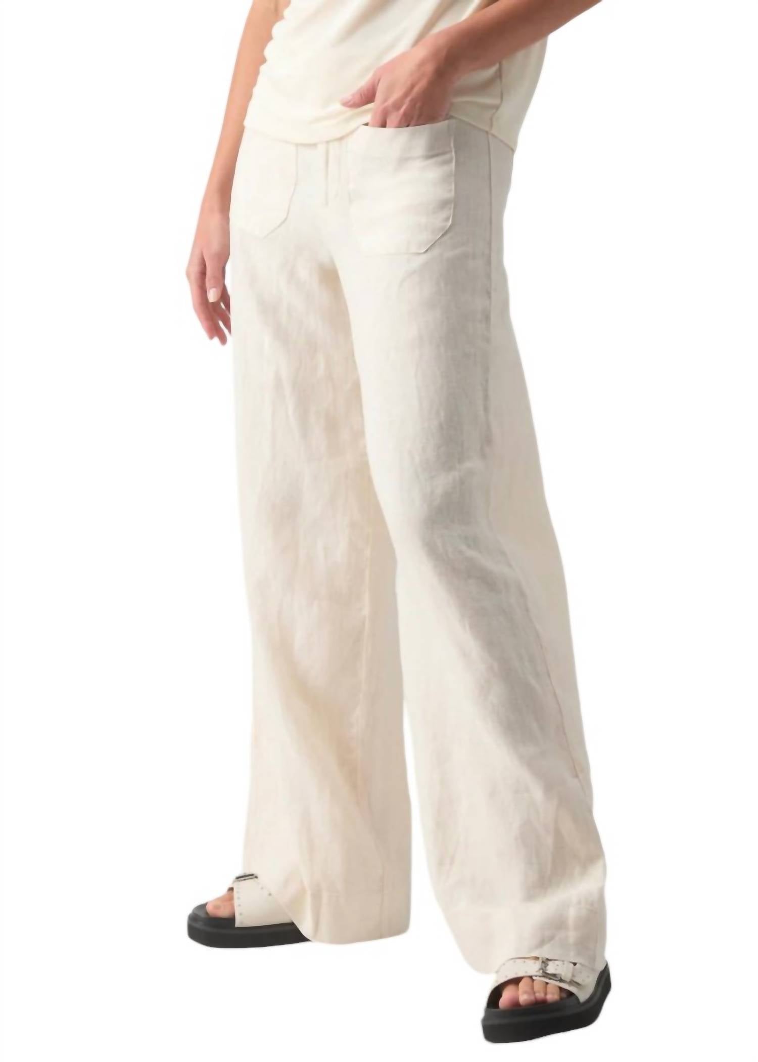 As Calças Largas Linen Marine oferecem um visual descontraído e estiloso com seu design de pernas largas. Com fecho de botão e zíper, passantes para cinto e vários bolsos (dois bolsos frontais e dois bolsos traseiros), estas calças são funcionais e elegantes. Não têm forro para um toque mais leve e são feitas de 100% linho para respirabilidade. Com costura interna de 81 cm, são laváveis à máquina para facilitar a manutenção. Importadas.