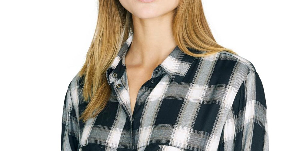 Blusa xadrez boyfriend feminina Sanctuary New Generation, preta, tamanho G