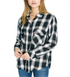 Blusa feminina xadrez de manga comprida com gola e botões Sanctuary, preta, tamanho pequeno