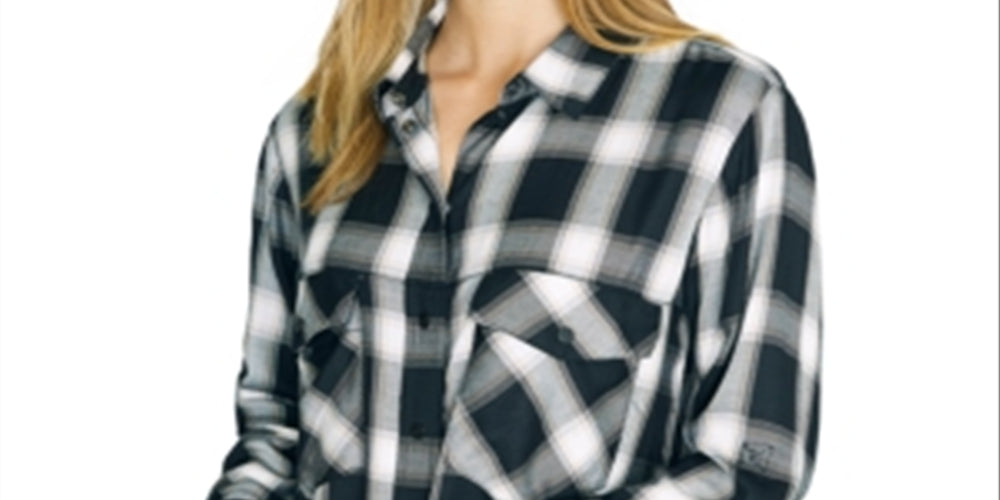 SANCTUARY Blusa casual feminina xadrez de manga comprida com gola e botões