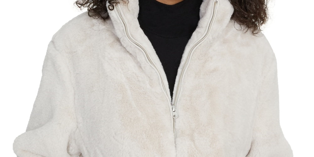 Comprimento aproximado; 24 do centro das costas até a bainha | Gola alta; fecho de zíper na frente | Acabamento em pele sintética | Dois bolsos frontais nos quadris | Forrado | Revestimento em pele sintética; poliéster; forro; poliéster/rayon