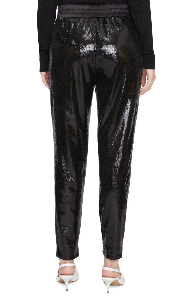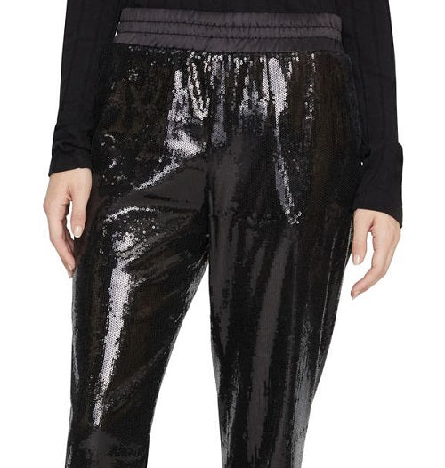Calça feminina Sanctuary com lantejoulas e perna reta para noite, preta, tamanho médio